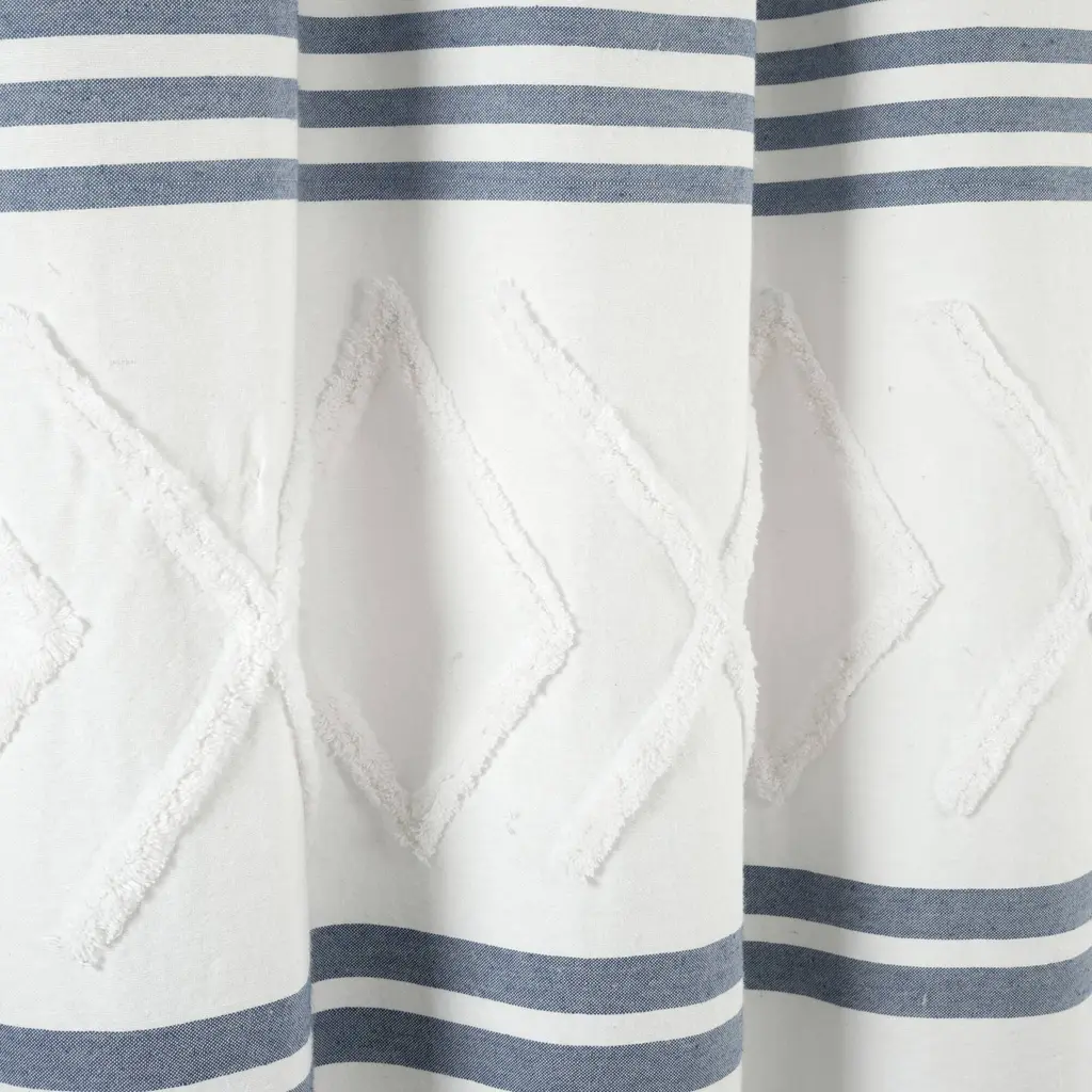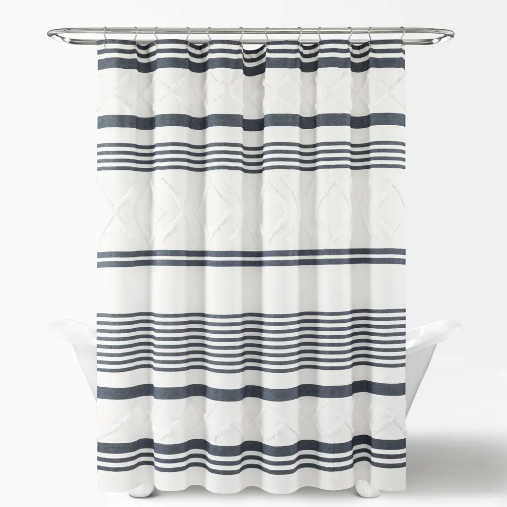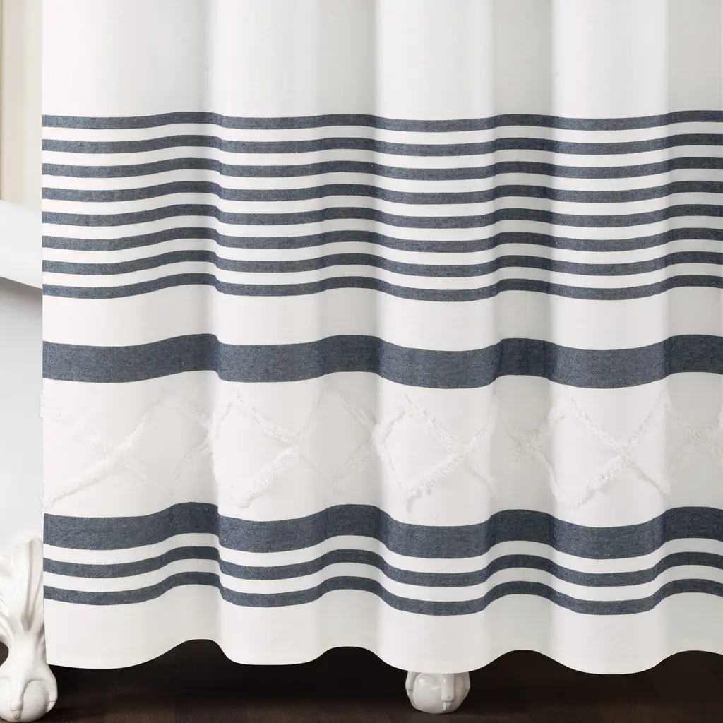 Lush Decor Urban Diamond Stripe Woven Tufted Eco-Friendly Recycled Cotton Shower Curtain Single - Navy - 72" X 72"