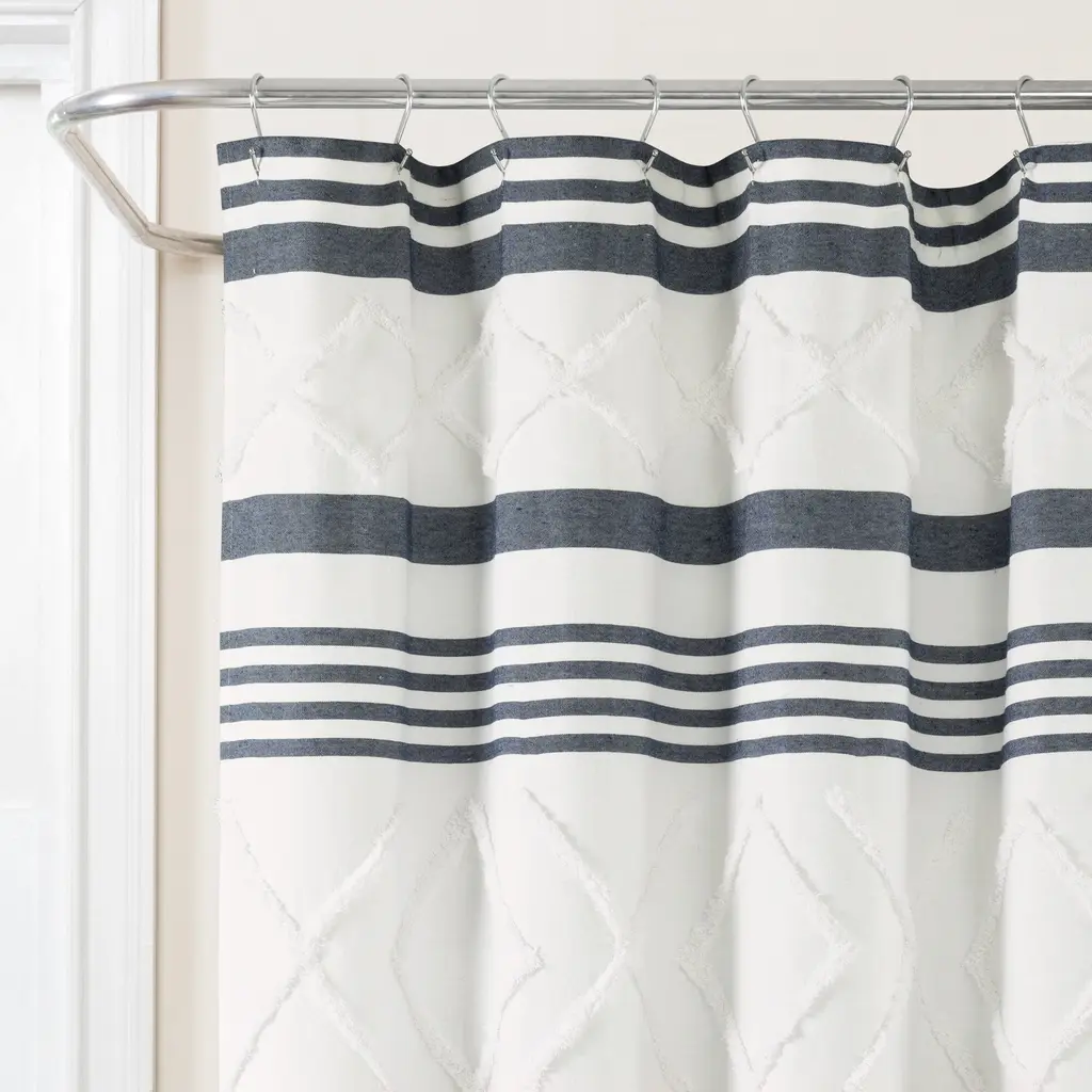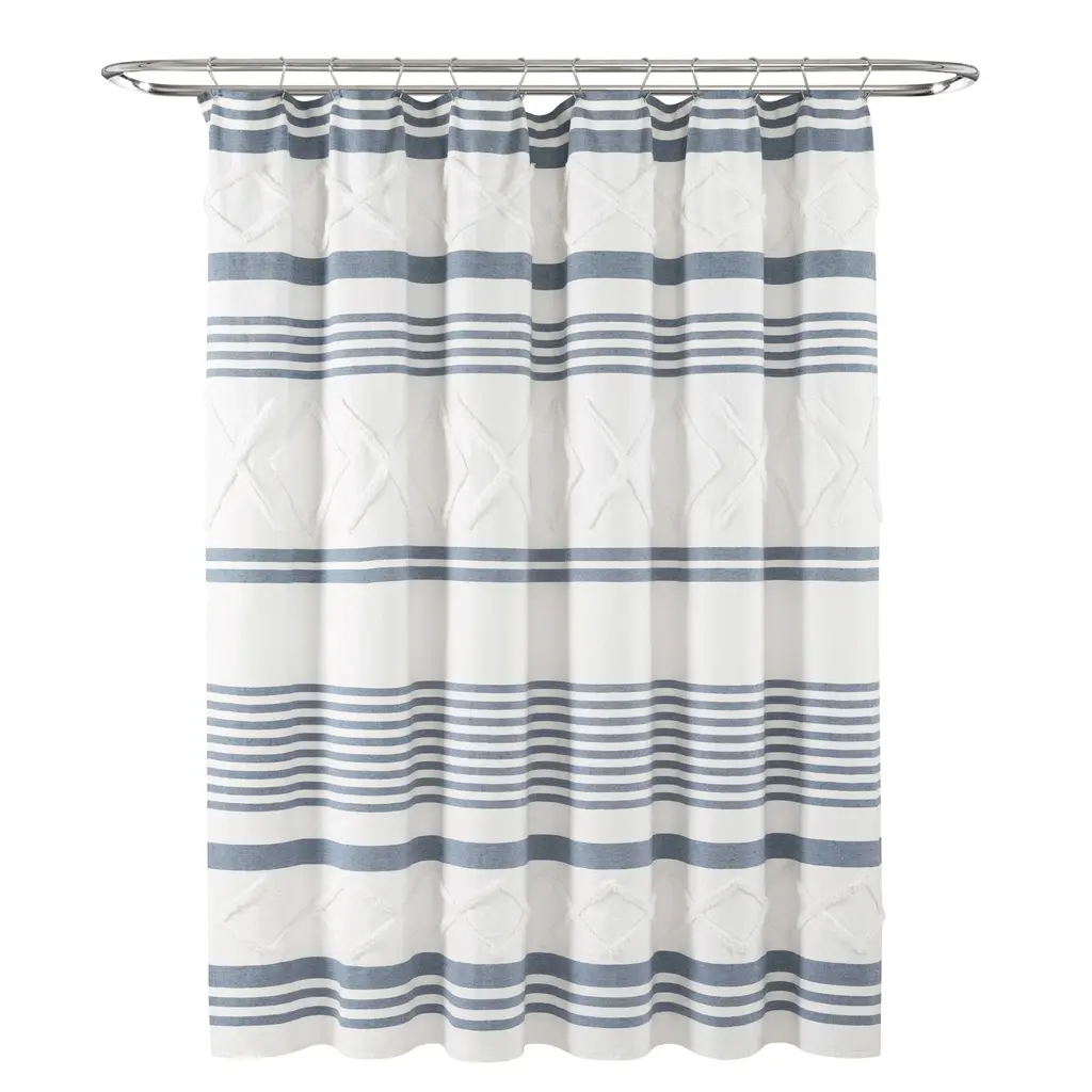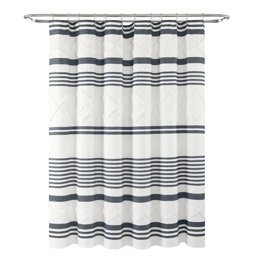 Lush Decor Urban Diamond Stripe Woven Tufted Eco-Friendly Recycled Cotton Shower Curtain Single - Navy - 72" X 72"