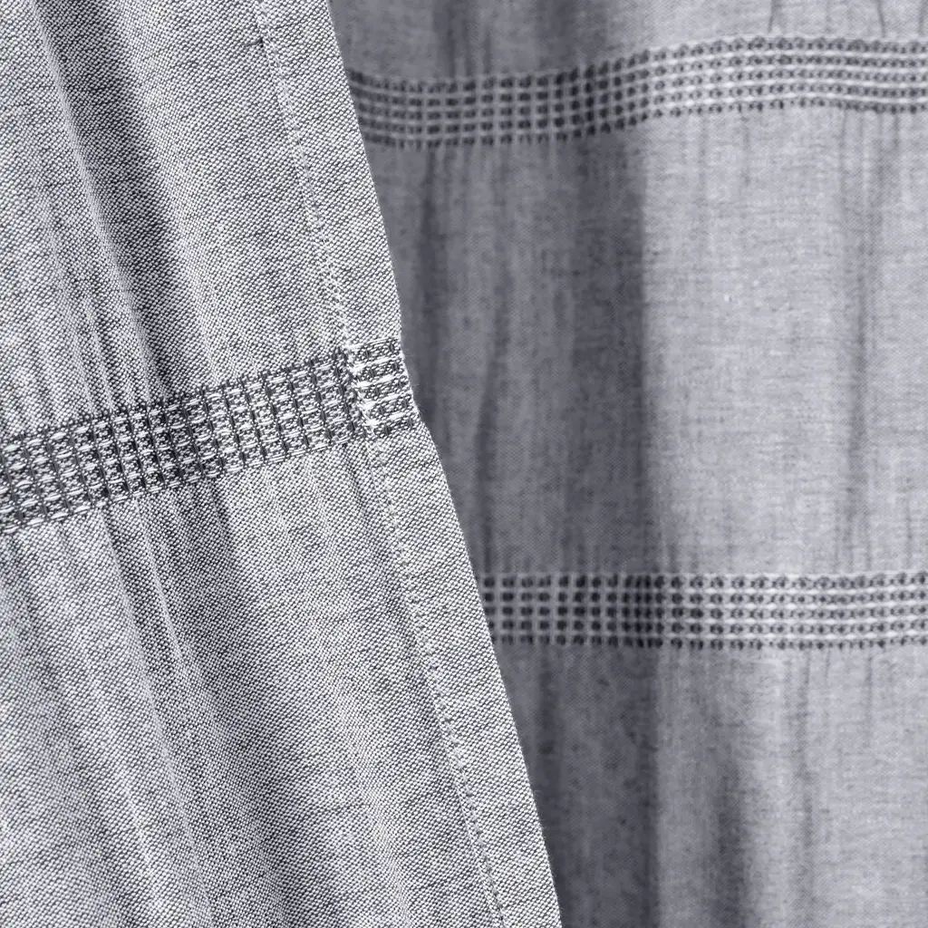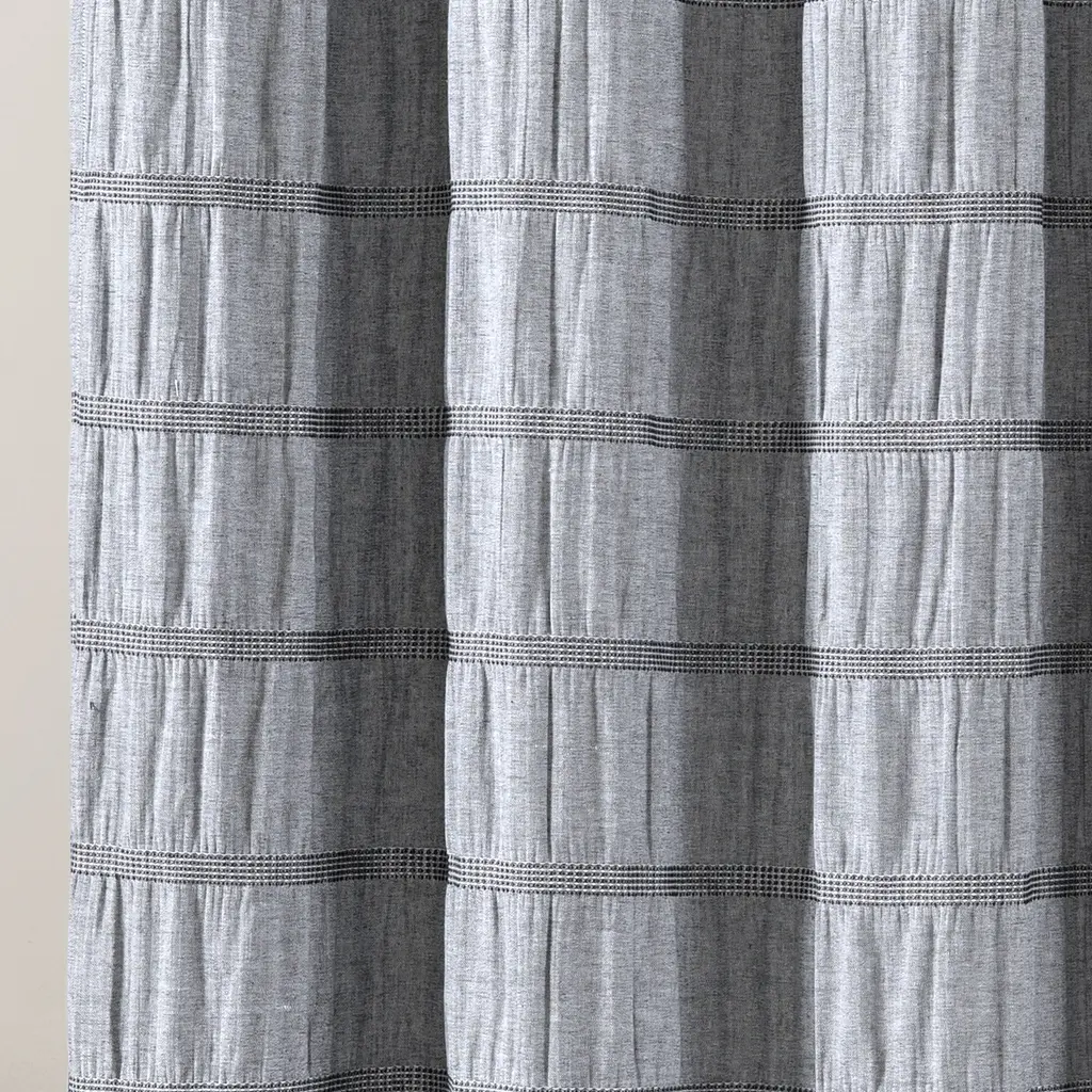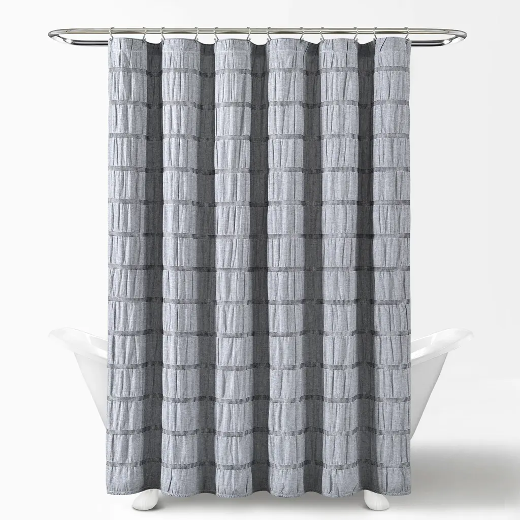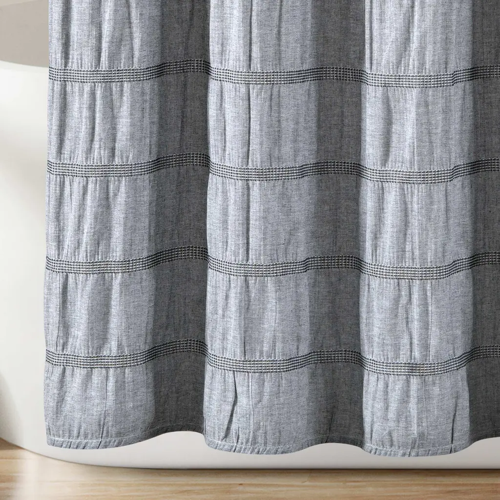 Update your master or guest bathroom with this woven cotton shower curtain which features textured horizontal stripes. This shower curtain fits well in a minimalist, traditional or modern farmhouse style design theme. Measures 72 inches on each side.Features: