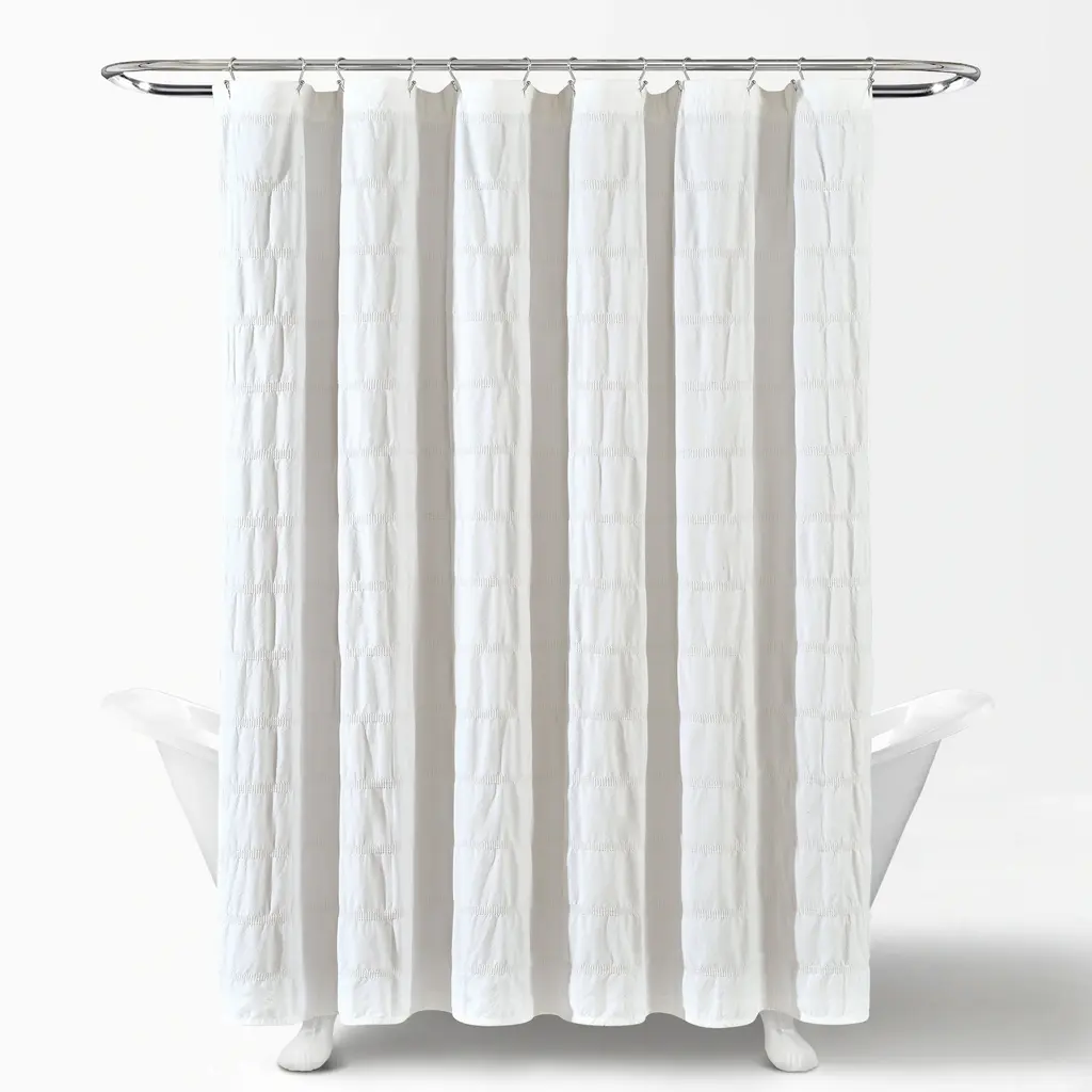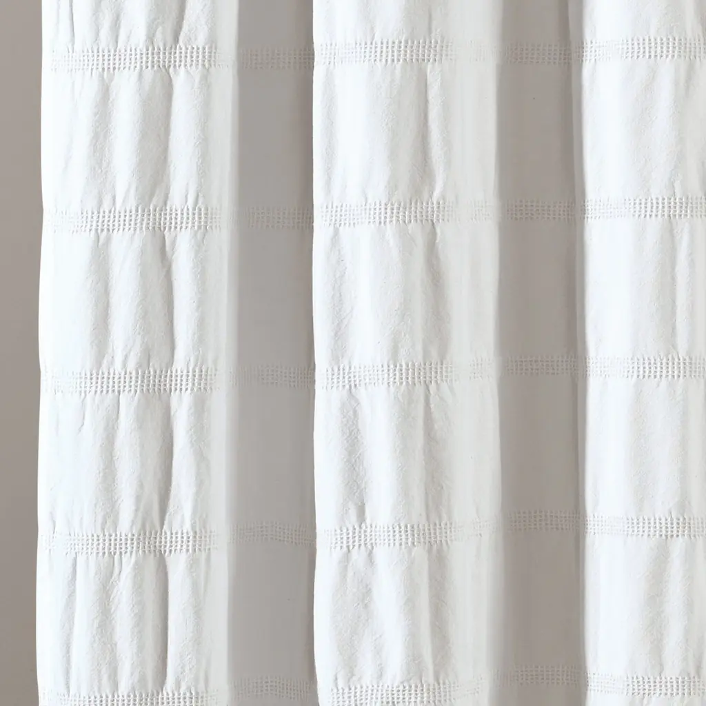 Lush Decor Waffle Stripe Woven Cotton Shower Curtain - White