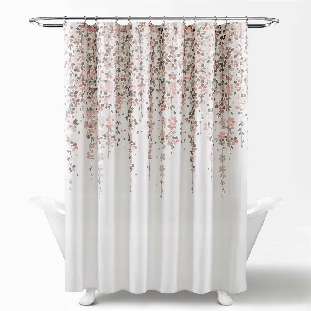 Add a touch of charm to your bathroom with Lush Decor's Weeping Flower Shower Curtain. The delightful print, made of 100% polyester, is perfect for any season and available in multiple colors to match your decor. The microfiber fabric is easy to clean, making this shower curtain both beautiful and functional.Features:Additional section: