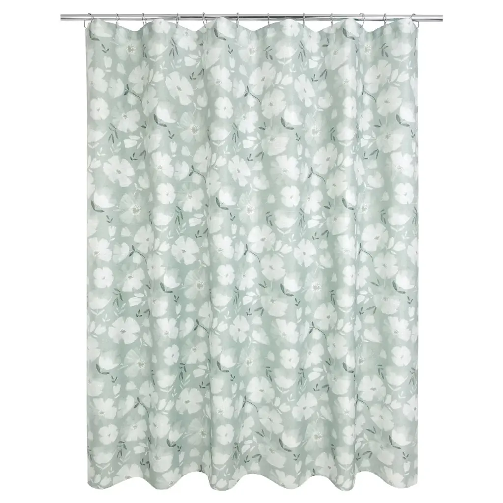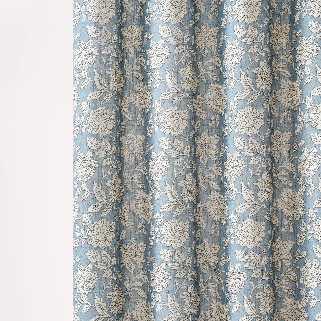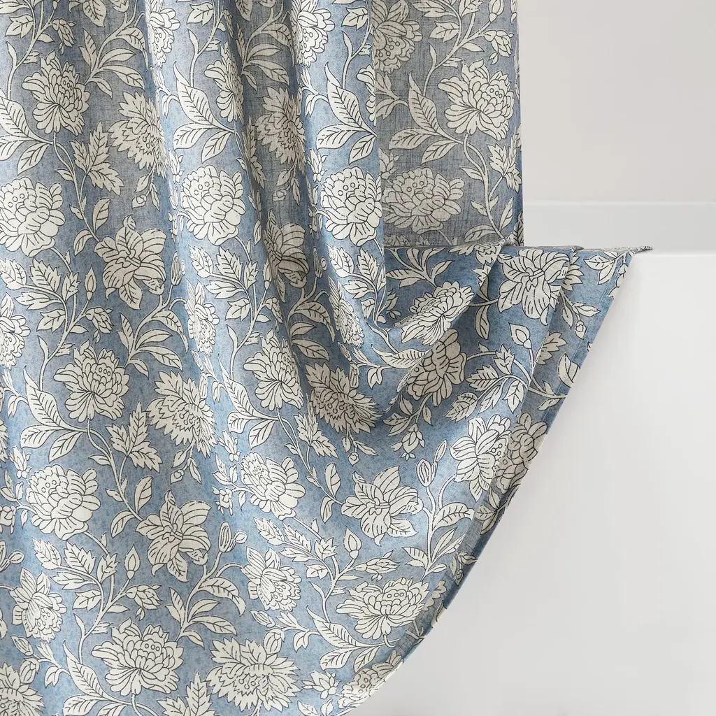 Add charming florals to your bathroom with this block print shower curtain. Featuring a classic floral print of blooming flowers, it complements vintage or coquette style homes. Crafted from a linen blend fabric for a natural texture. Sold as a single shower curtain and measures 72 inches wide by 72 inches long. Installation is easy with 12 button holes at the top to hang with shower hooks or rings. Pair this fabric shower curtain with a liner, sold separately. Machine washable for easy care. Set Details: 1-Pc Set Includes: 1 Shower Curtain Dimensions: Shower Curtain: 72"H x 72"W