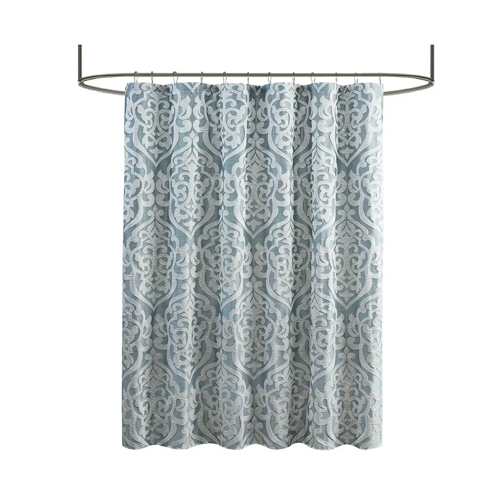 Luxury Jacquard Shower Curtain - Aqua+silver