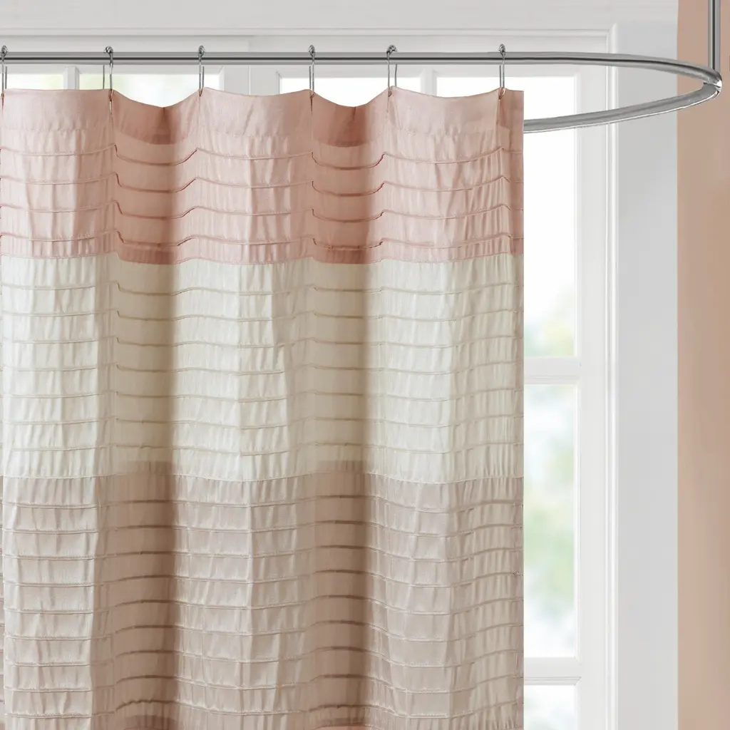Elevate your bathroom with this elegant shower curtain. Featuring pintuck details and elegant stripes of brown and taupe, the curtain effortlessly enhances any decor, and the faux silk fabric offers a luxurious texture. The fabric is machine washable for easy cleaning.Pattern layout may vary due to variation of sizes. Features:Sizes: