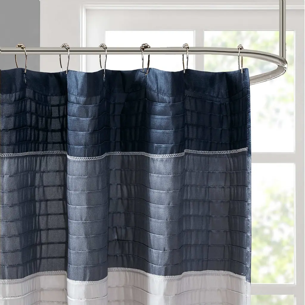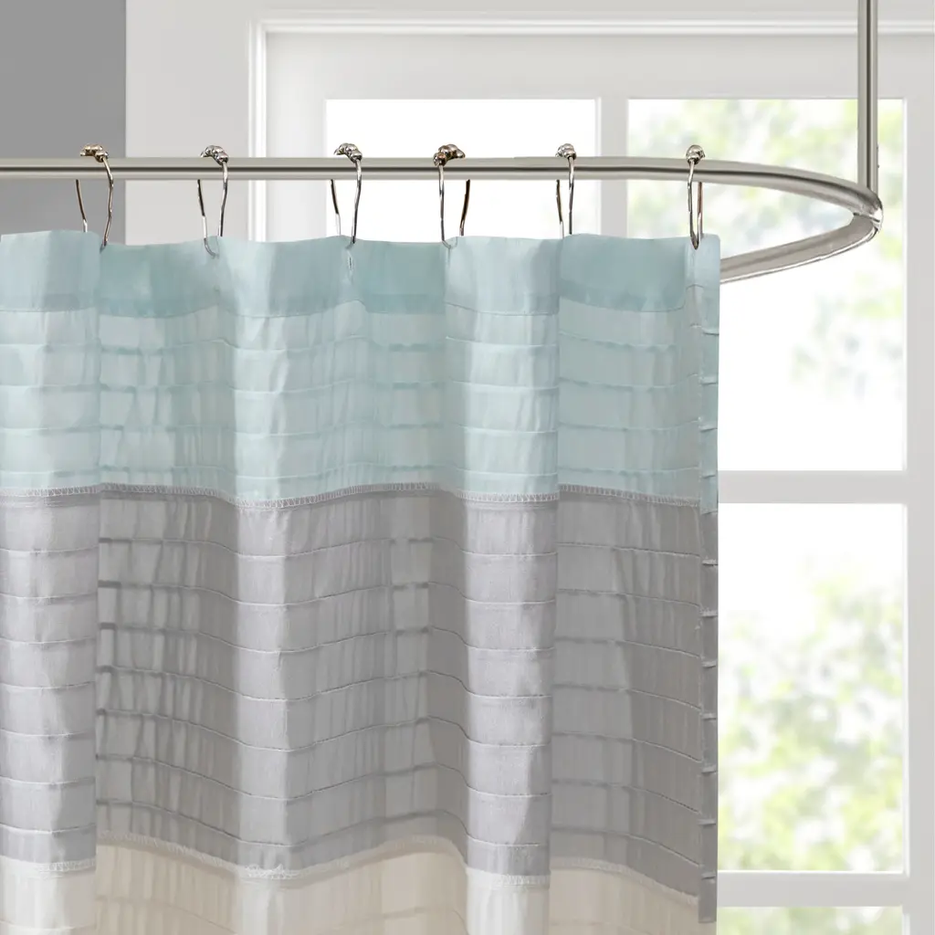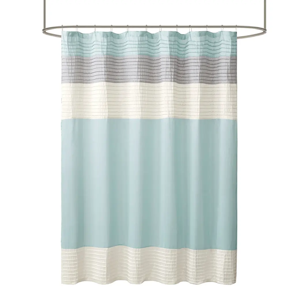 Elevate your bathroom style with this durable shower curtain. The versatile curtain is enhanced with textured stripes that will add depth to your decor. Choose from four color options to match your color motif. Pattern layout may vary due to variation of sizes. A water repellant liner is not included, and highly recommended. Features: