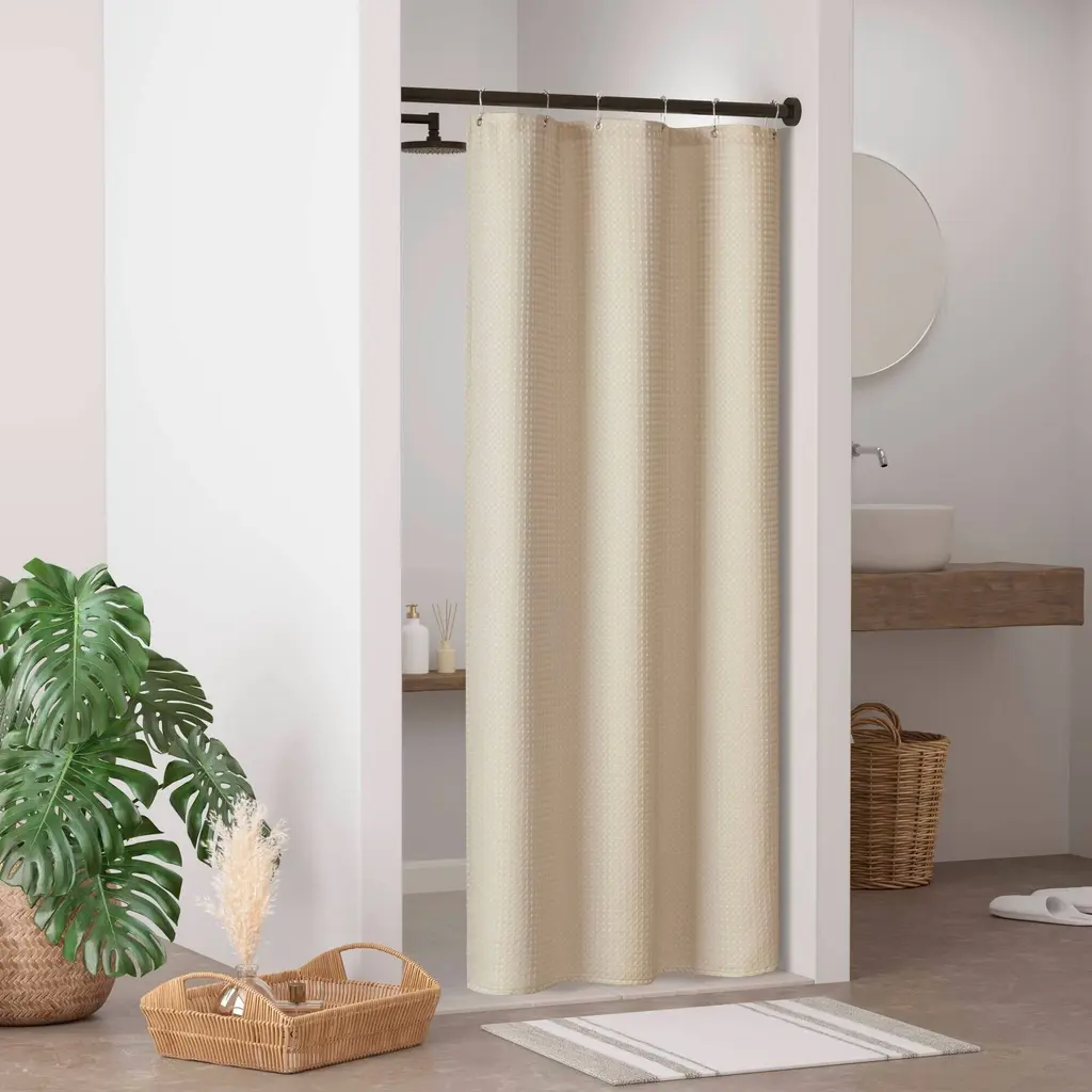 Madison Park Arbor Waffle Waffle Shower Curtain - Beige - 72x72"