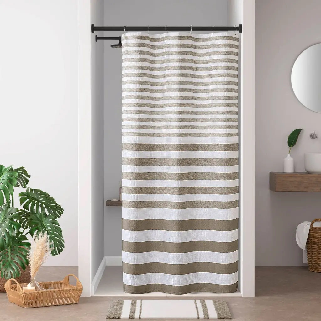Discover the perfect blend of style and functionality with our premium bathroom curtain featuring a cozy waffle design, creating an inviting atmosphere ideal for modern urban living. Crafted from high-quality materials for exceptional durability and longevity, this curtain is designed to minimize shrinkage and preserve its vibrant color. It also features advanced 3M Scotchgard technology that wicks moisture, keeping the fabric dry while reducing the risk of mold and mildew buildup. The chic ombre gradient adds a contemporary flair, transforming your bathroom with a soothing and stylish transition of colors. Available in a variety of colors and sizes, it effortlessly complements any bathroom layout or style. Plus, it's easy to maintain—simply machine wash in cold water for a clean and fresh look with minimal effort. Elevate your space with this stunning, practical addition!