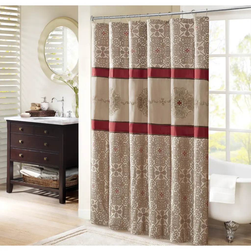 Madison Park Blaine Embroidered Shower Curtain - Red