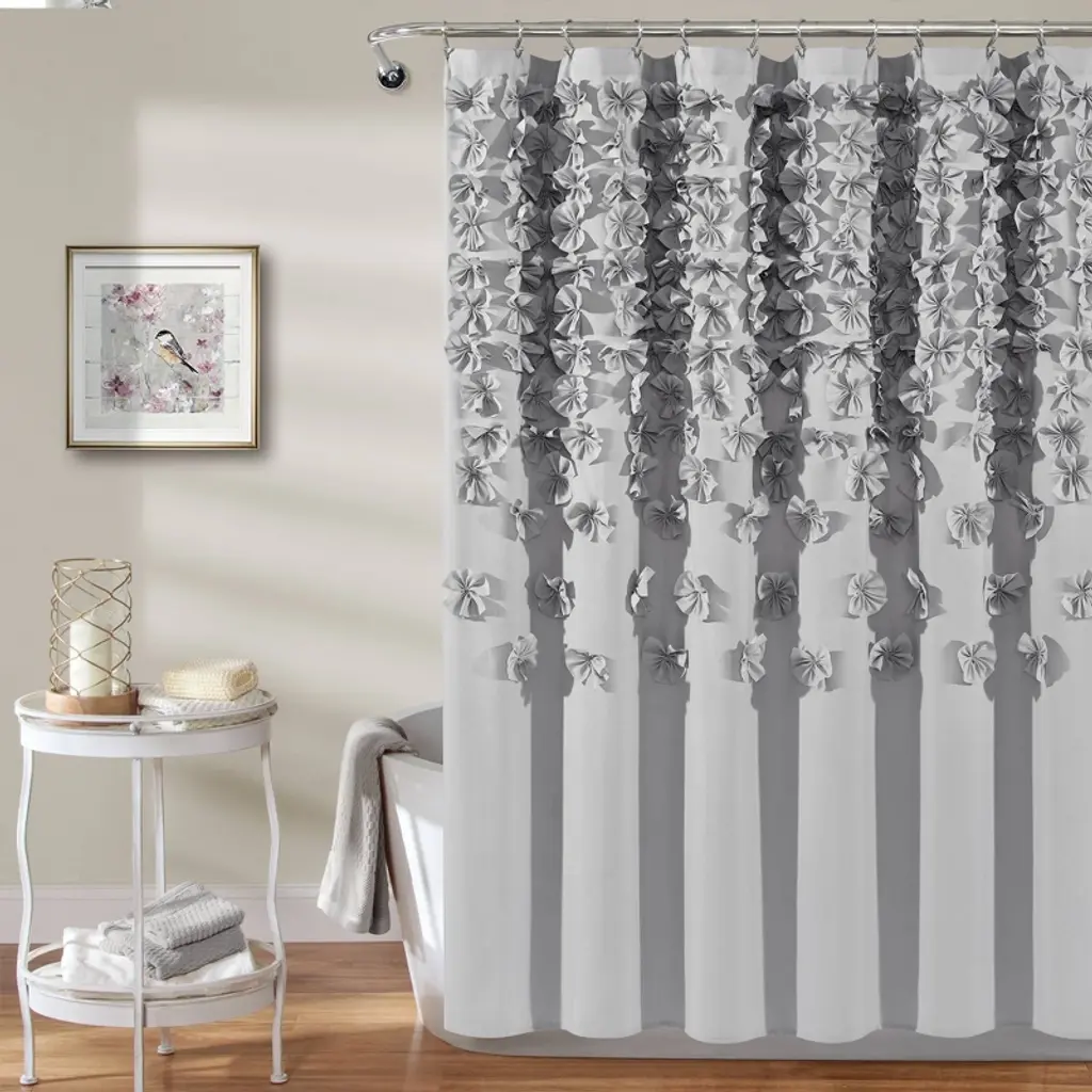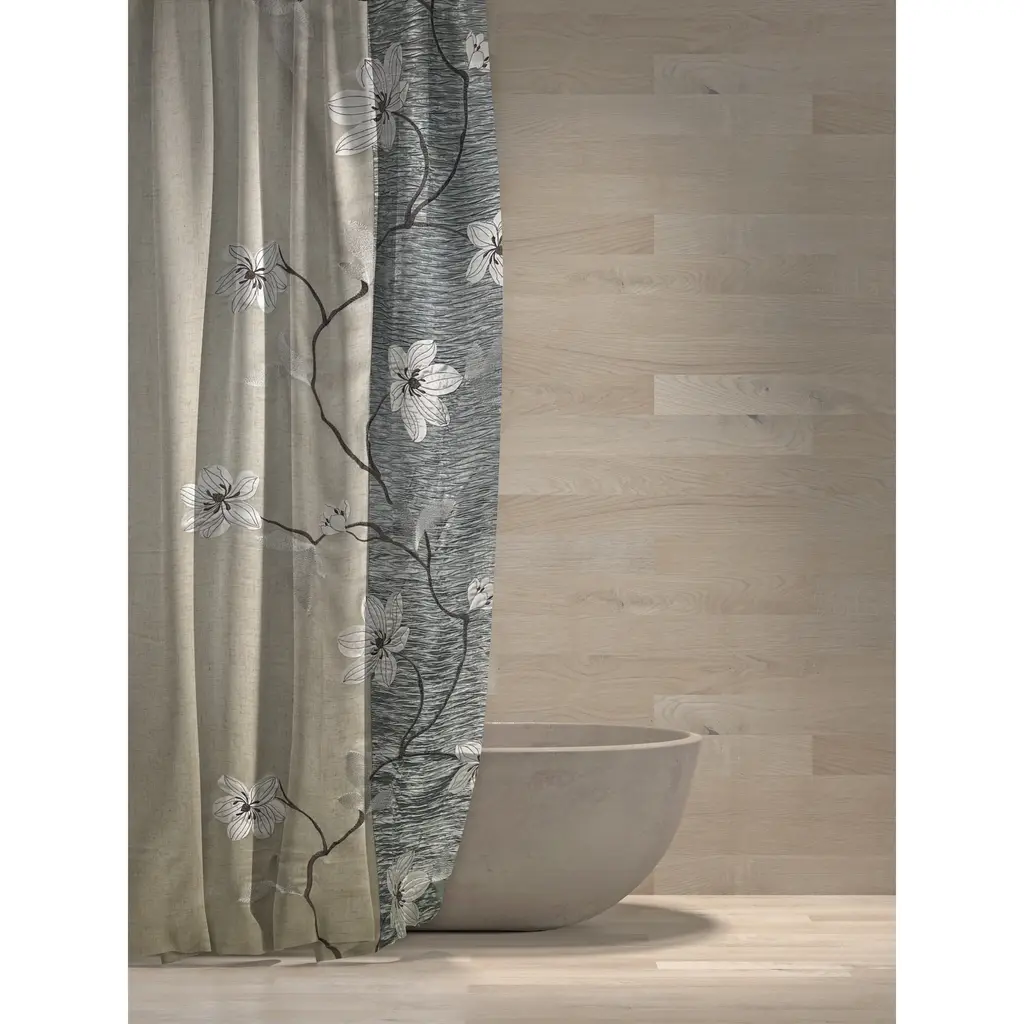 Create a relaxed cozy atmosphere with this beautiful fabric shower curtain. The charming stitched magnolia vine, embellished with fabric blossoms adds an elegant yet subtle touch to your bathroom. The warm neutral tones make it easy to coordinate with other bathroom accessories.