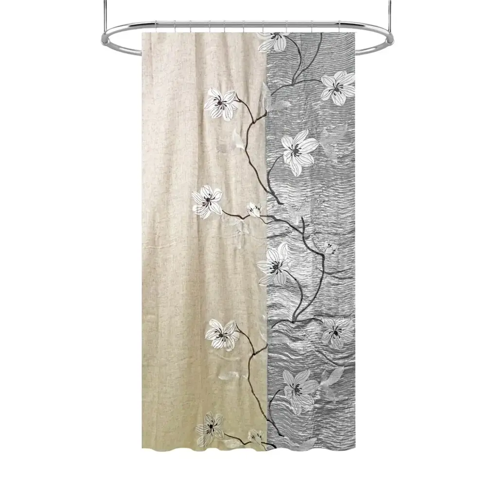 Create a relaxed cozy atmosphere with this beautiful fabric shower curtain. The charming stitched magnolia vine, embellished with fabric blossoms adds an elegant yet subtle touch to your bathroom. The warm neutral tones make it easy to coordinate with other bathroom accessories.
