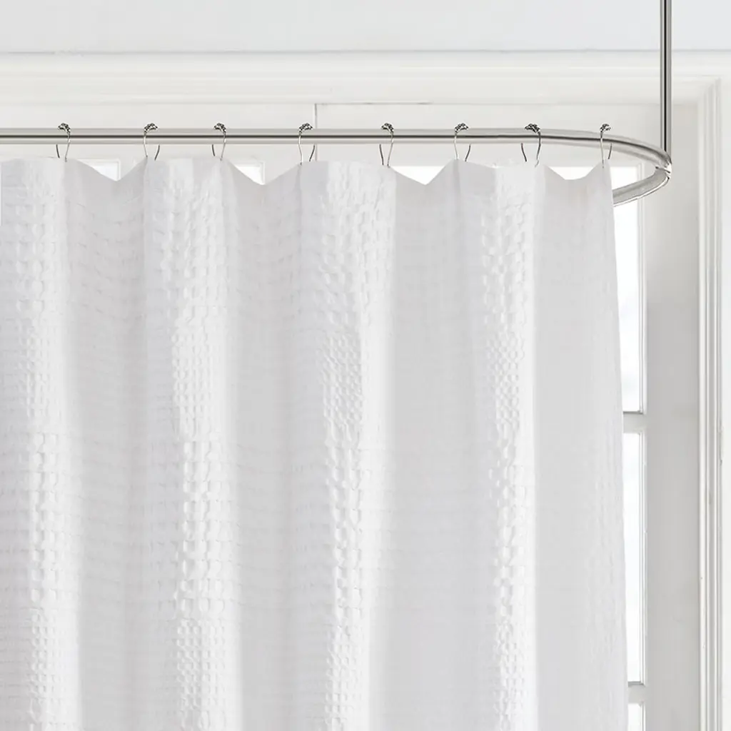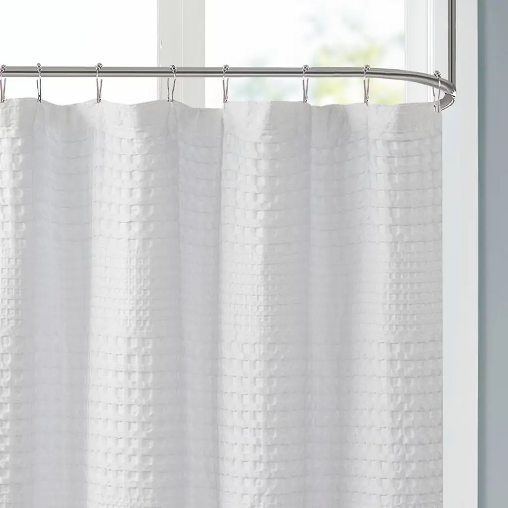 Mayeerty Super Waffle Textured Solid Shower Curtain Cotton White