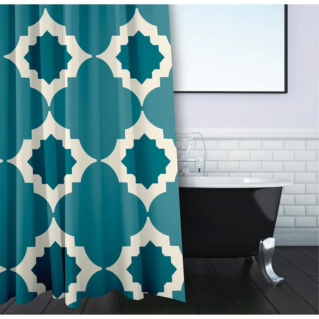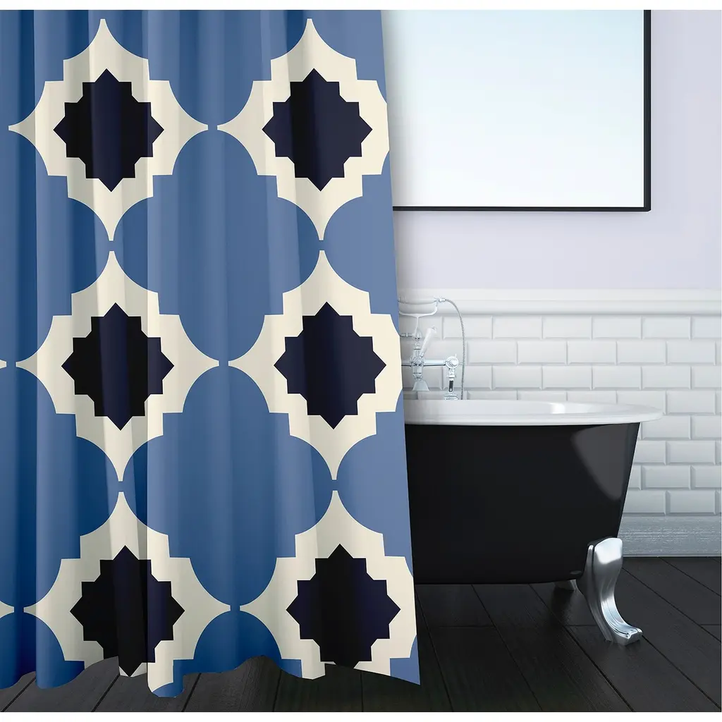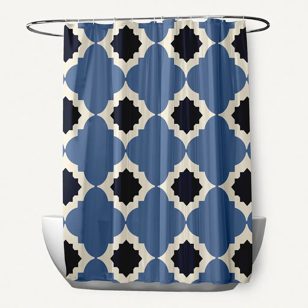 Change up your home decor for the fall season with the Blue Medina shower curtain from our Fall Cascades Collection. Everyone will enjoy the earthy aesthetics brought to your bath space by this decorative shower curtain! The warm tones of this collection will envelop you in comfort, and delight you throughout the season.Features:Durable Polyester FabricQuick DryingMachine Washable71" x 74"12 Button Holes for hook placementPattern: GeometricStyle: SouthwesternColor Choices: Blue, Teal, Grey, Yellow