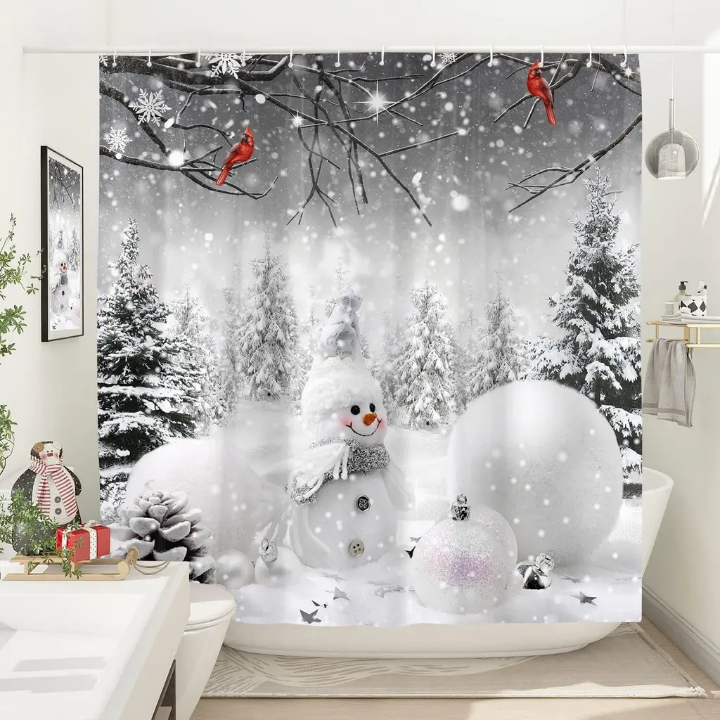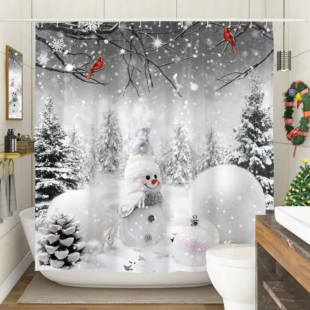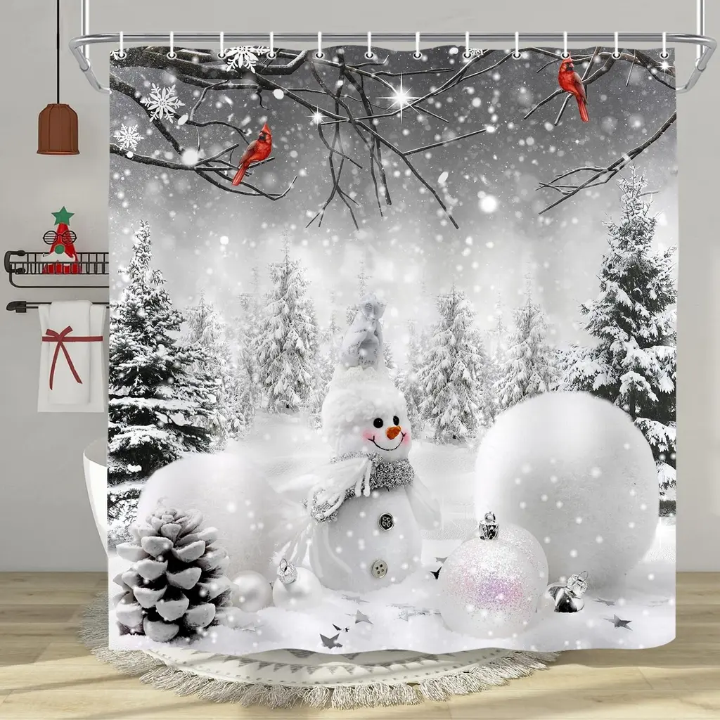 Celebrate the holiday season in style with our Merry Christmas Shower Curtain, featuring an enchanting design of snowmen and pine trees. Measuring 72" x 72", this festive shower curtain transforms your bathroom into a winter wonderland, adding a cheerful touch to your decor. Crafted from durable, water-resistant fabric, it offers both privacy and protection from water splashes while enhancing your festive atmosphere. The charming snowman and pine tree graphics evoke a sense of joy and warmth, making every shower feel like a holiday celebration. Easy to hang and machine washable, this shower curtain is the perfect addition to your Christmas decor, spreading cheer throughout your home. Embrace the spirit of the season with this delightful piece!