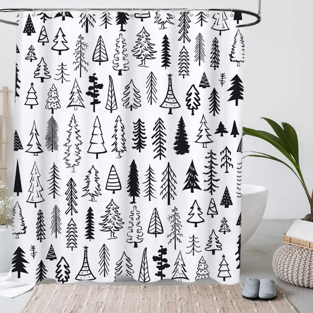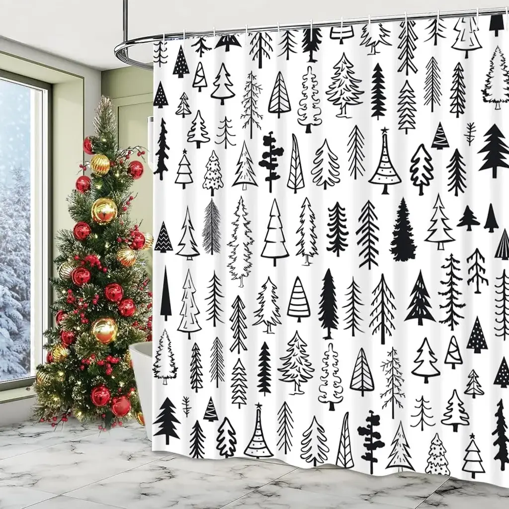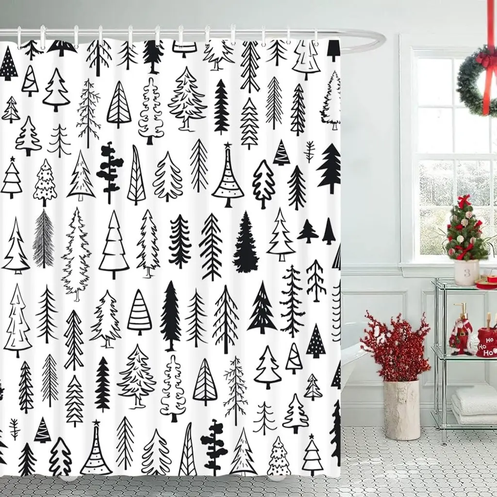 Add a touch of elegance to your holiday decor with this Merry Christmas Shower Curtain, measuring 72" x 72". Featuring a striking black and white tree design, this curtain brings a modern twist to traditional Christmas themes. Crafted from high-quality, water-resistant fabric, it ensures durability while keeping your bathroom dry. The chic color palette and festive imagery create a stylish atmosphere, perfect for celebrating the season. Easy to install and maintain, this shower curtain is a fantastic choice for elevating your bathroom decor and making every shower a festive experience!