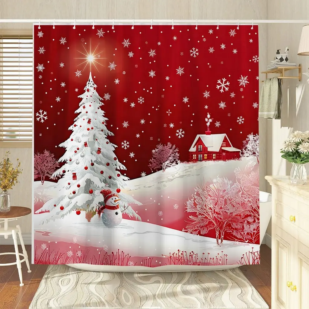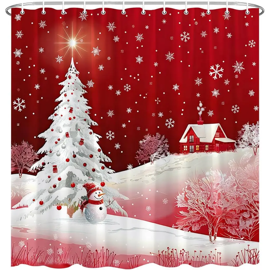 Spread holiday cheer with this Merry Christmas Shower Curtain, measuring 70" x 70". Featuring an adorable snowman design against a festive red backdrop, this curtain adds a cheerful touch to your bathroom decor. Made from high-quality, water-resistant fabric, it ensures durability while keeping your space dry. The vibrant colors and charming imagery create a warm and inviting atmosphere, perfect for celebrating the joy of the season. Easy to install and maintain, this shower curtain is a delightful addition to your holiday decorations, making every shower feel like a winter wonderland!