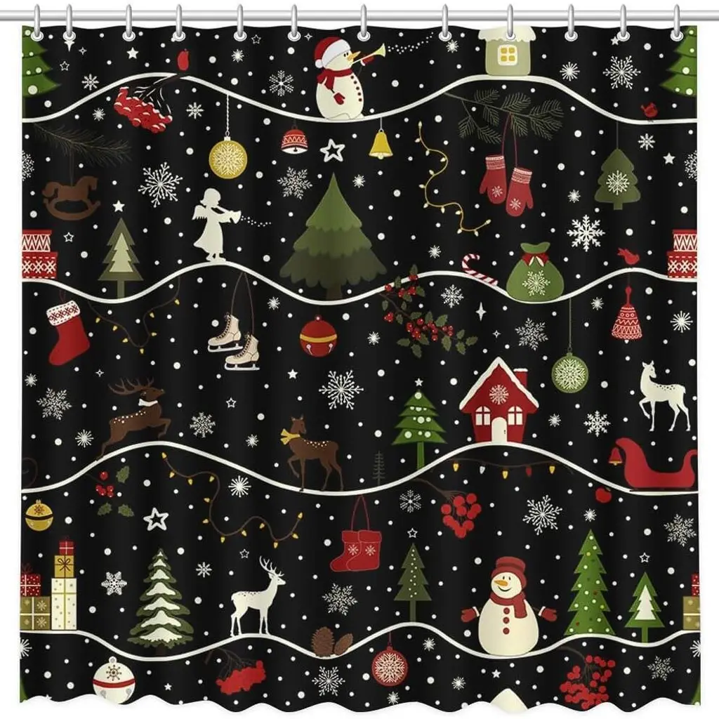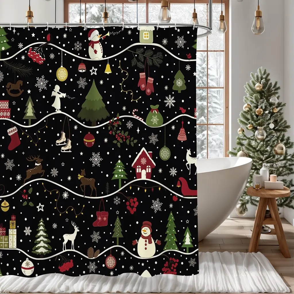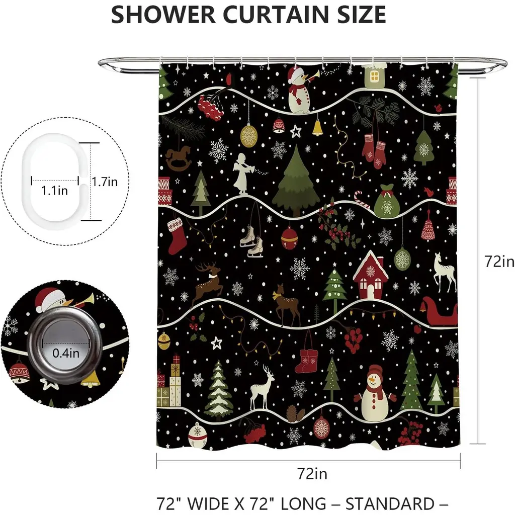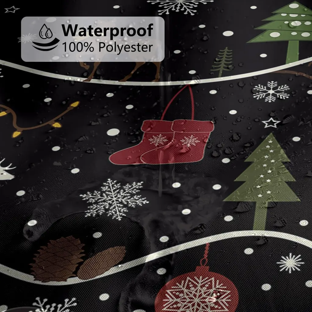 Merry Christmas Shower Curtain - Tree & Reindeer Decor, 72x72 Inch - Multicolor