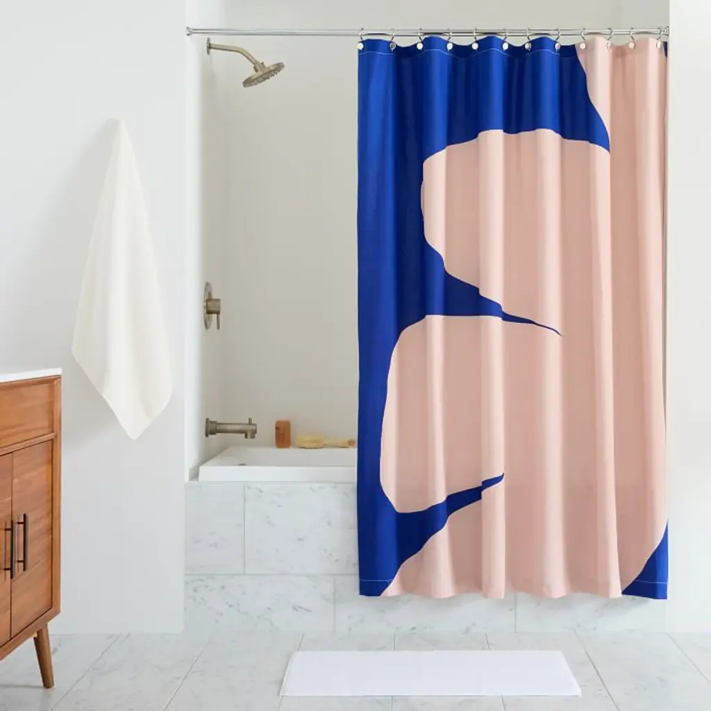 Modern Floral Colorblock Shower Curtain