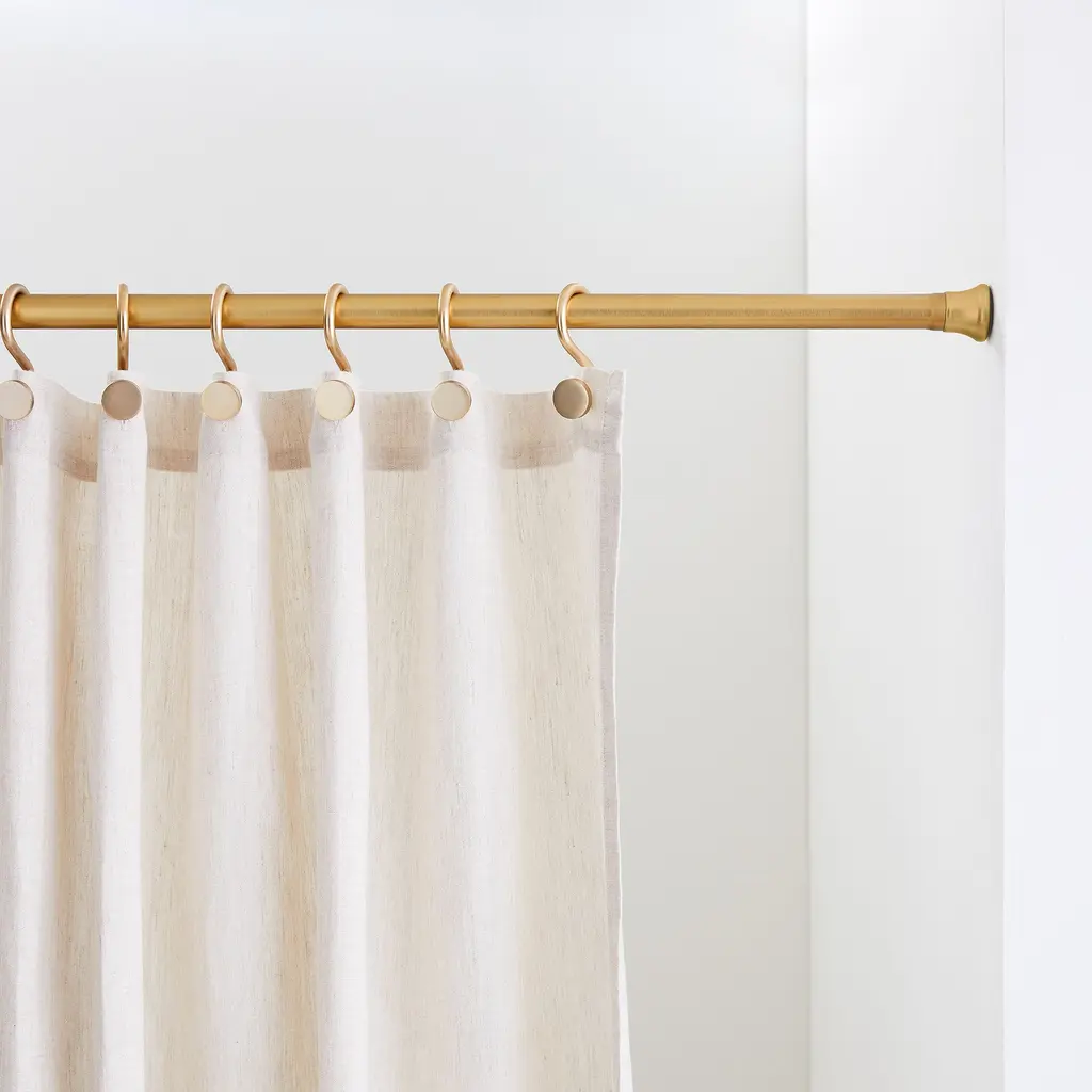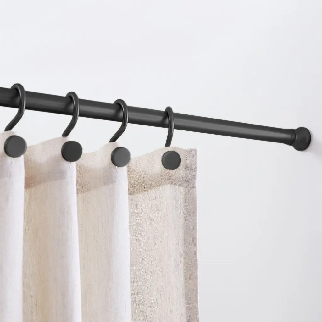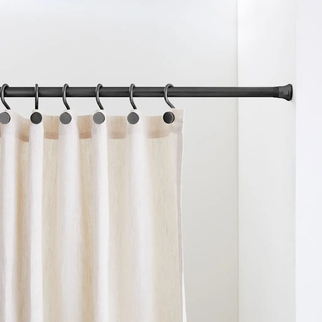 Hold your shower curtain on this modern curtain rod. Made from durable, long-lasting steel. It's extendable to fit most shower frames.