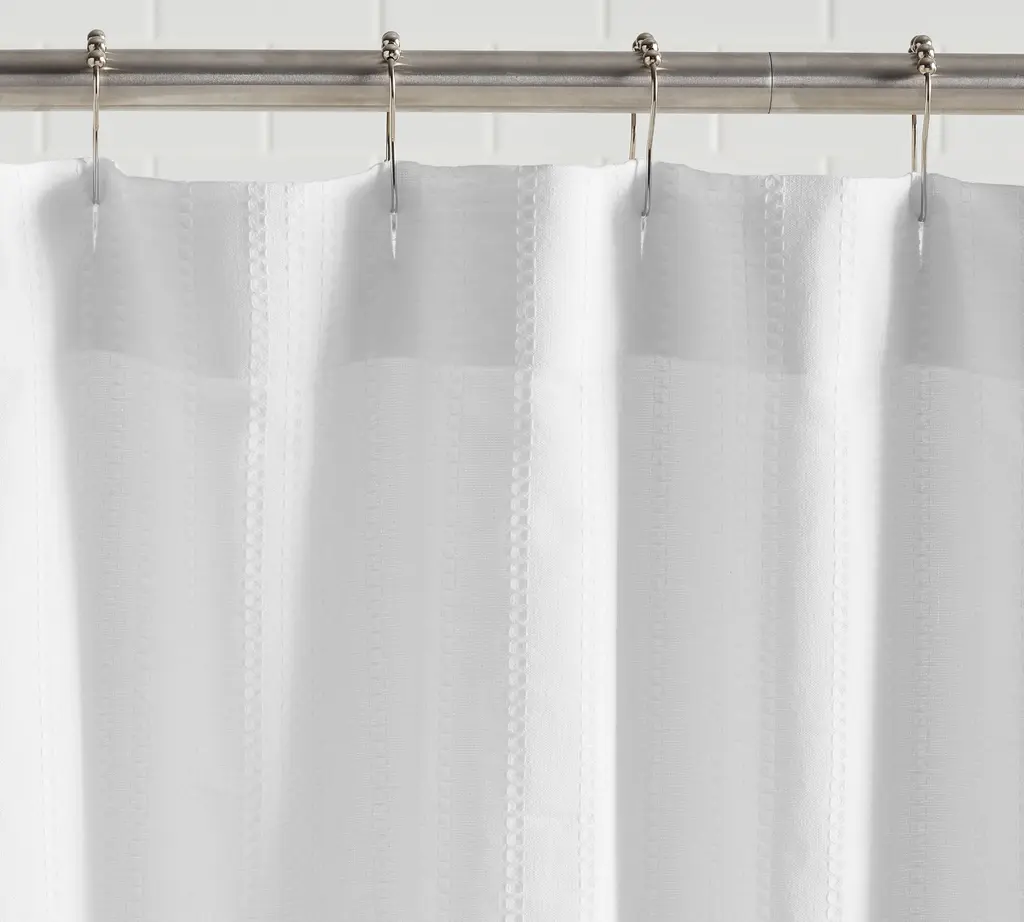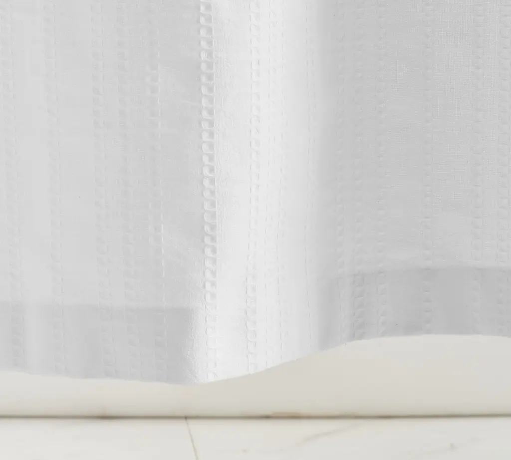 The charm of this shower curtain is in its subtle design, created by textural stripes and a tonal color scheme. Woven from pure cotton, it has a lightweight breathability that matches its breezy, coastal elegance.
