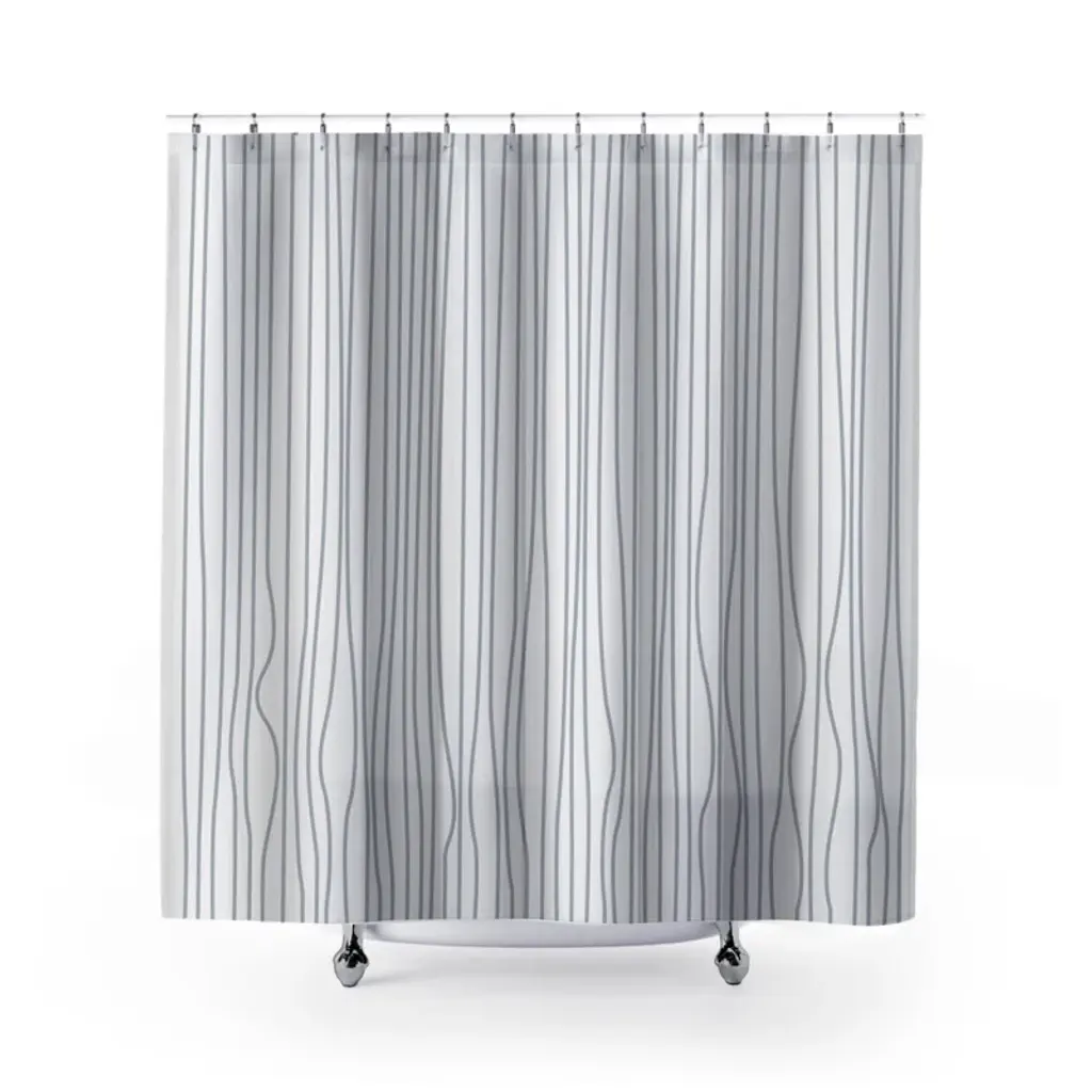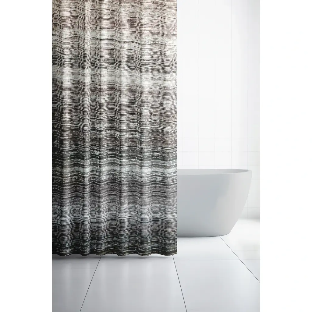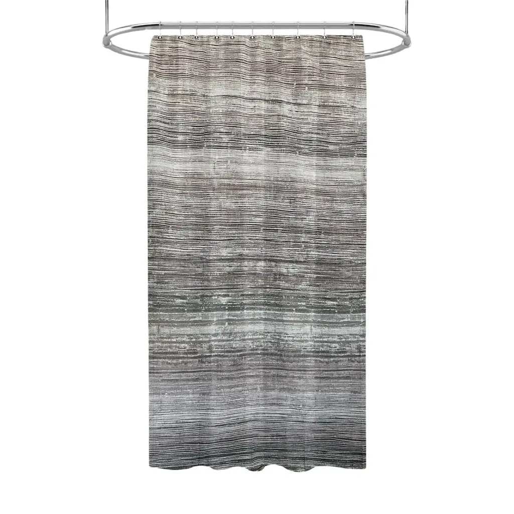 Brighten up any bath and shower with this elegant fabric shower curtain. The multiple neutral and cooler shades of blue combine in a stripe-like ombre effect for a unique soothing pattern. Perfect for adding beauty to any bathroom. Specifications:
