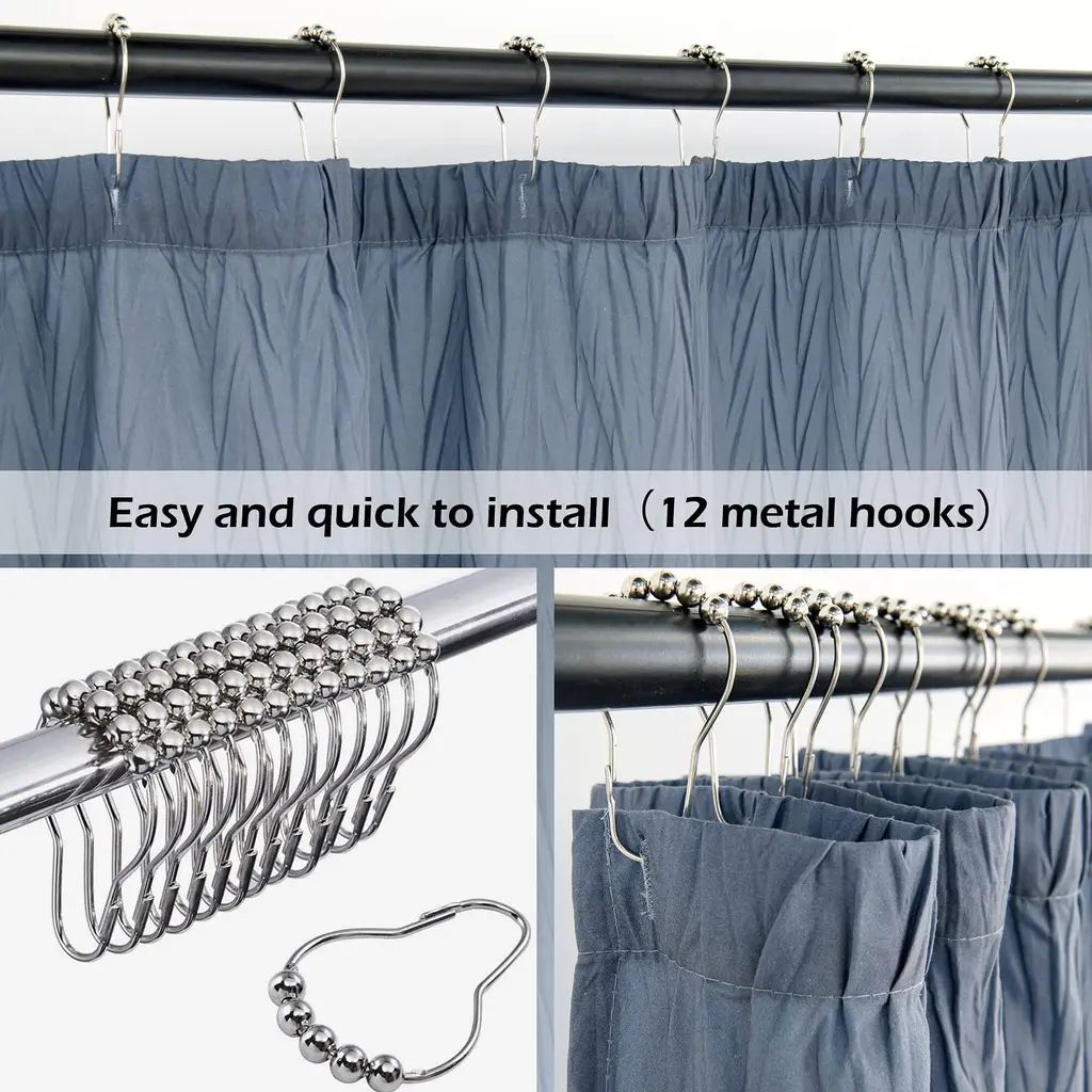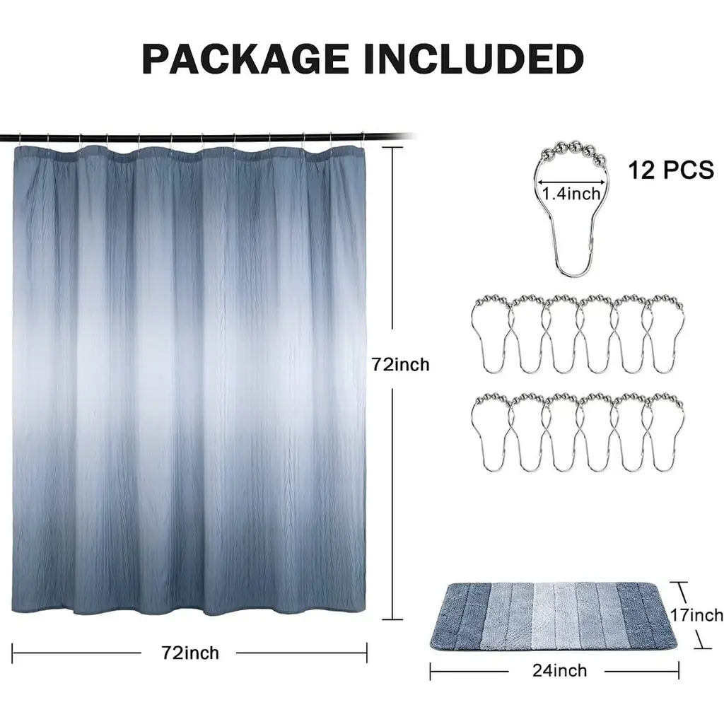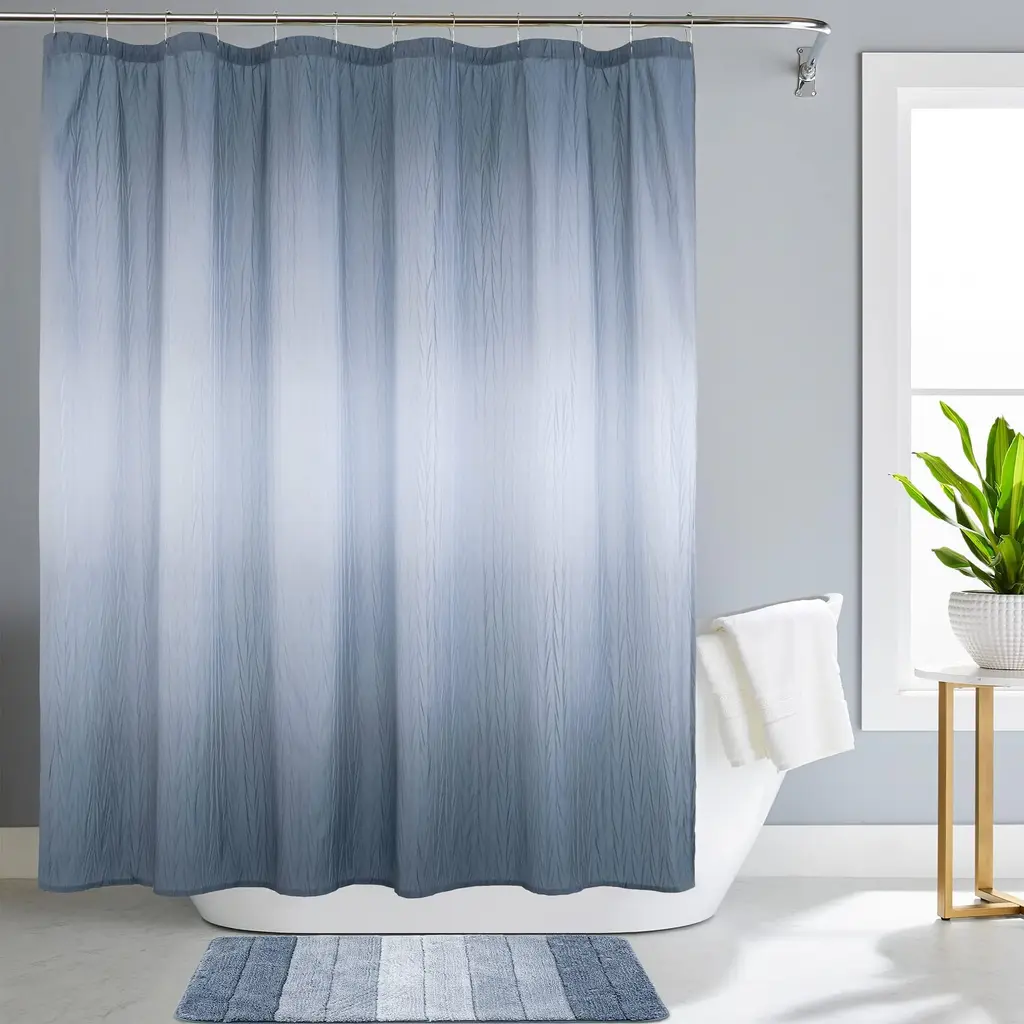 Ombre Textured Shower Curtain Set, 72"x72", Navy Blue, Waterproof