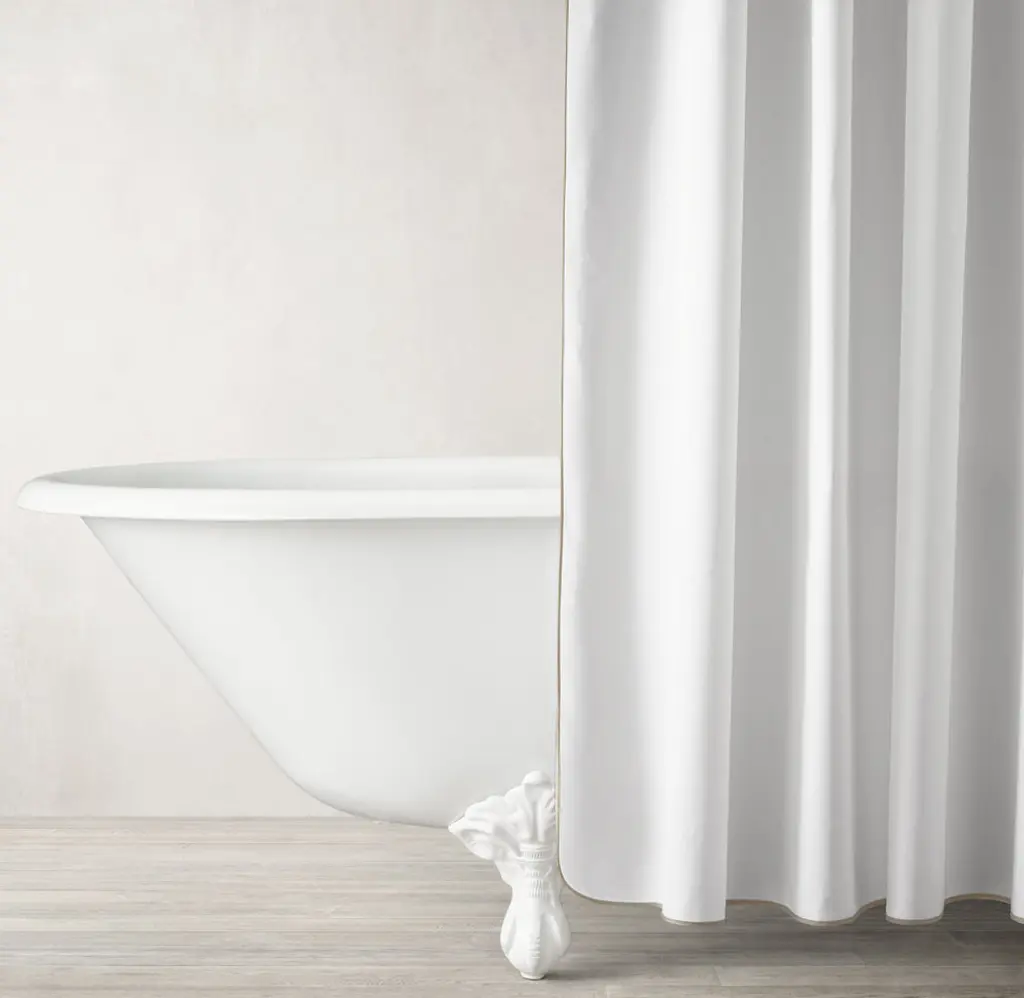 FREE SHIPPING Smooth cotton piping lends tailored definition to our luxe shower curtain. Crafted from premium 300-thread-count cotton sateen, it offers an elegant drape, soft luster and classic style.