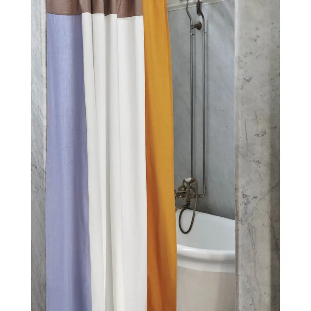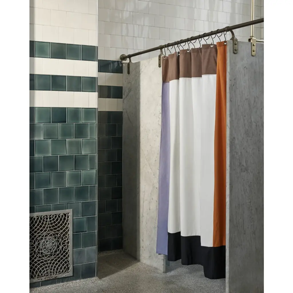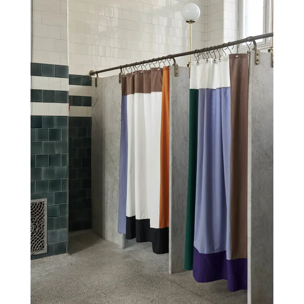 HAY's Pivot shower curtain delights with its geometric design and vibrant color combinations. Made from certified cotton, the shower curtain is decorated with a square pattern that adds fresh shades and a touch of cheerful atmosphere to your bathroom décor. The Pivot shower curtain can either be pulled through the rod or attached to it with the shower curtain rings sold separately.