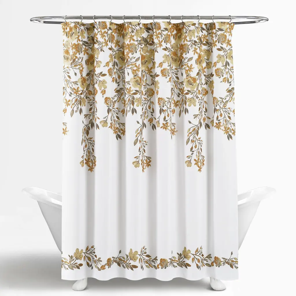Transform your bathroom into a shabby chic sanctuary with this Porch & Den Elcaro shower curtain. Featuring a stunning floral-style vine design, this curtain is available in a variety of color options to match any decor. Made of durable and easy-to-care-for polyester, this machine-washable curtain is a functional and stylish addition to any bathroom.Features: