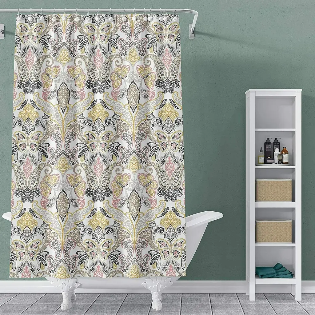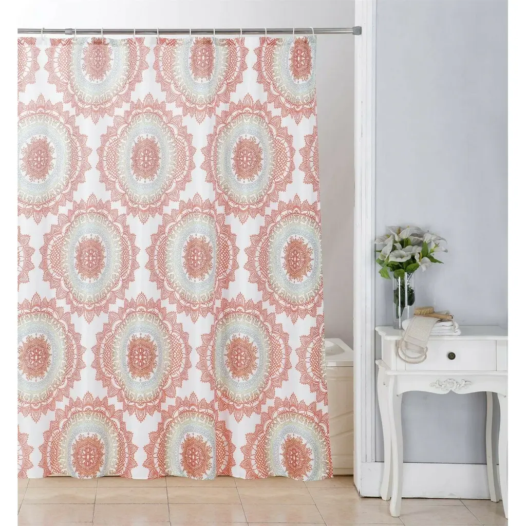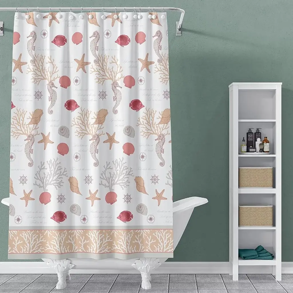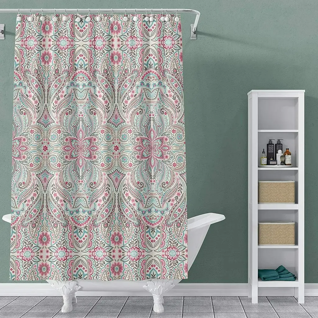 Elevate your bathroom decor with the Printed Canvas Shower Curtain featuring a beautiful nautical design. Measuring 70" x 70", this stunning shower curtain adds a touch of seaside charm and sophistication to your bathroom. Crafted from durable polyester, it offers both beauty and durability, making it the ideal choice to enhance your bathroom space. Spruce up your bathroom with this great quality fabric canvas shower curtain Emery by Linen Store. This shower curtain features a beautiful and colorful paisley floral design in Green/Orange tone on White canvas. Perfect bathroom decor for bathtubs and showers. Shower curtain size is 70 inch x 70 inch. Made of 100% Polyester. Care instruction : Machine was cold. Do not bleach. Hang to dry. Low iron if needed. Features: Nautical Elegance: The nautical design brings the charm of the sea into your bathroom, creating a stylish coastal ambiance. Generous Dimensions: Measuring 70" x 70", this shower curtain provides full coverage for most standard showers. Durable Polyester Material: Crafted from high-quality polyester, it offers long-lasting beauty and functionality. Effortless Maintenance: Polyester material is easy to clean and maintain, ensuring your bathroom looks its best. Quick and Simple Installation: The shower curtain features reinforced grommets for easy hanging, making your bathroom decor transformation a breeze. Seaside Ambiance: Infuse your bathroom with coastal charm and style with the nautical design. Ample Coverage: Measuring 70" x 70 inches, it's perfect for most standard showers. Long-Lasting Polyester: Crafted from high-quality polyester, it offers both beauty and durability. Effortless Installation: The shower curtain features reinforced grommets for easy hanging, simplifying your bathroom decor update.