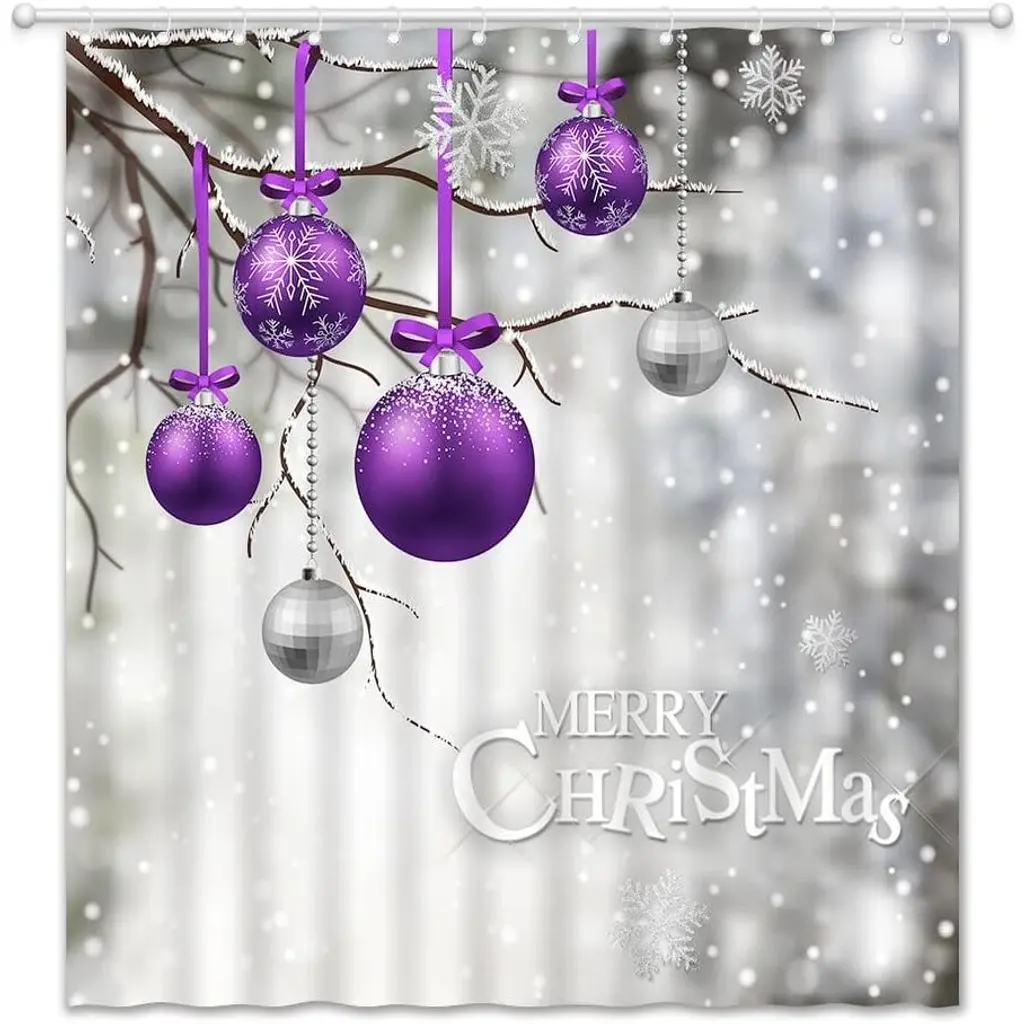 Purple Xmas Ball Merry Christmas Shower Curtain - Silver & Grey, 70x70 - Multicolor