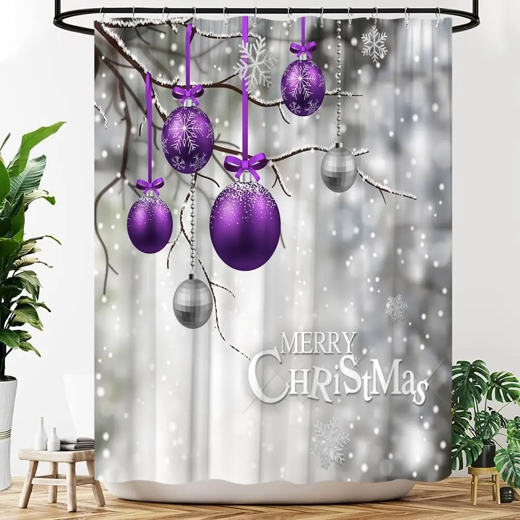 Add a touch of elegance to your holiday decor with our Purple Xmas Ball Merry Christmas Shower Curtain. This stylish 70x70 curtain features a beautiful arrangement of purple Christmas ornaments accented with silver and grey hues, creating a sophisticated look for your bathroom. Crafted from high-quality, water-resistant fabric, it offers durability and easy maintenance for everyday use. The chic color palette and festive design bring a festive yet refined atmosphere, making your space feel warm and inviting during the holiday season. Celebrate in style with this stunning shower curtain that captures the essence of Christmas!