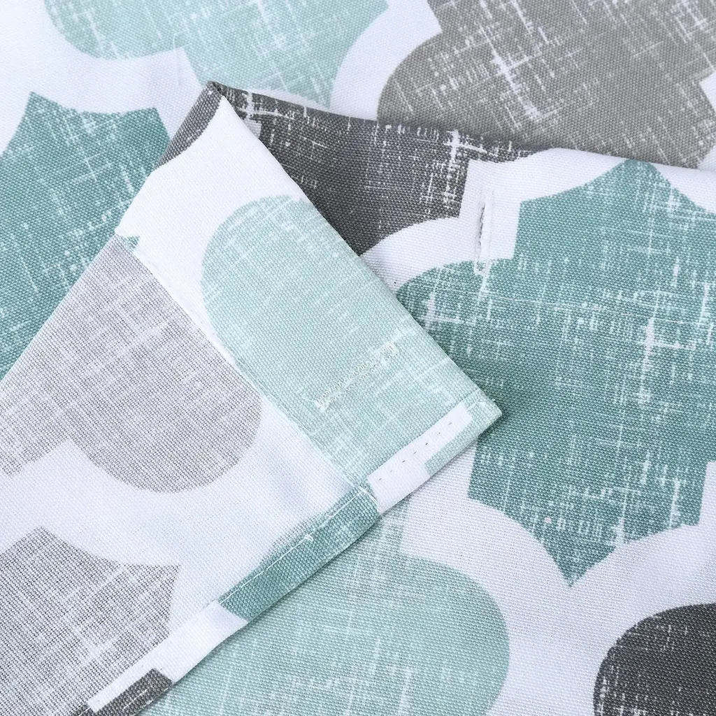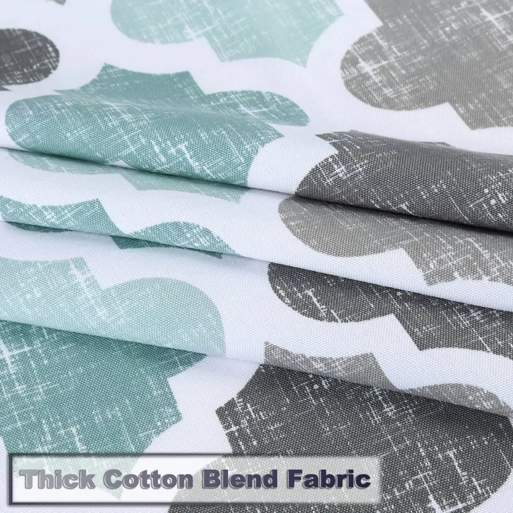 Upgrade your bathroom decor with our Geometric Cotton Blend Fabric Shower Curtain. Made from a 75% Polyester/25% Cotton blend thick fabric at 170gsm, this curtain offers superior quality and durability. The chic Geometric Quatrefoil Pattern in muted tones adds a touch of farmhouse charm. Not waterproof, it's recommended to use a liner for added protection. The heavy-weight woven fabric construction prevents billowing and drapes beautifully. Installation is a breeze with the reinforced top header and durable buttonhole construction. Machine washable for easy care, this curtain is the perfect addition to your bathroom. Features: Made of a cotton blend fabric for superior quality and durability. Chic geometric quatrefoil pattern adds sophistication to your bathroom. 170 GSM heavy-weight woven fabric construction prevents billowing. Reinforced top header with durable buttonhole construction for easy installation. Various lengths available to fit most bathtubs and showers.