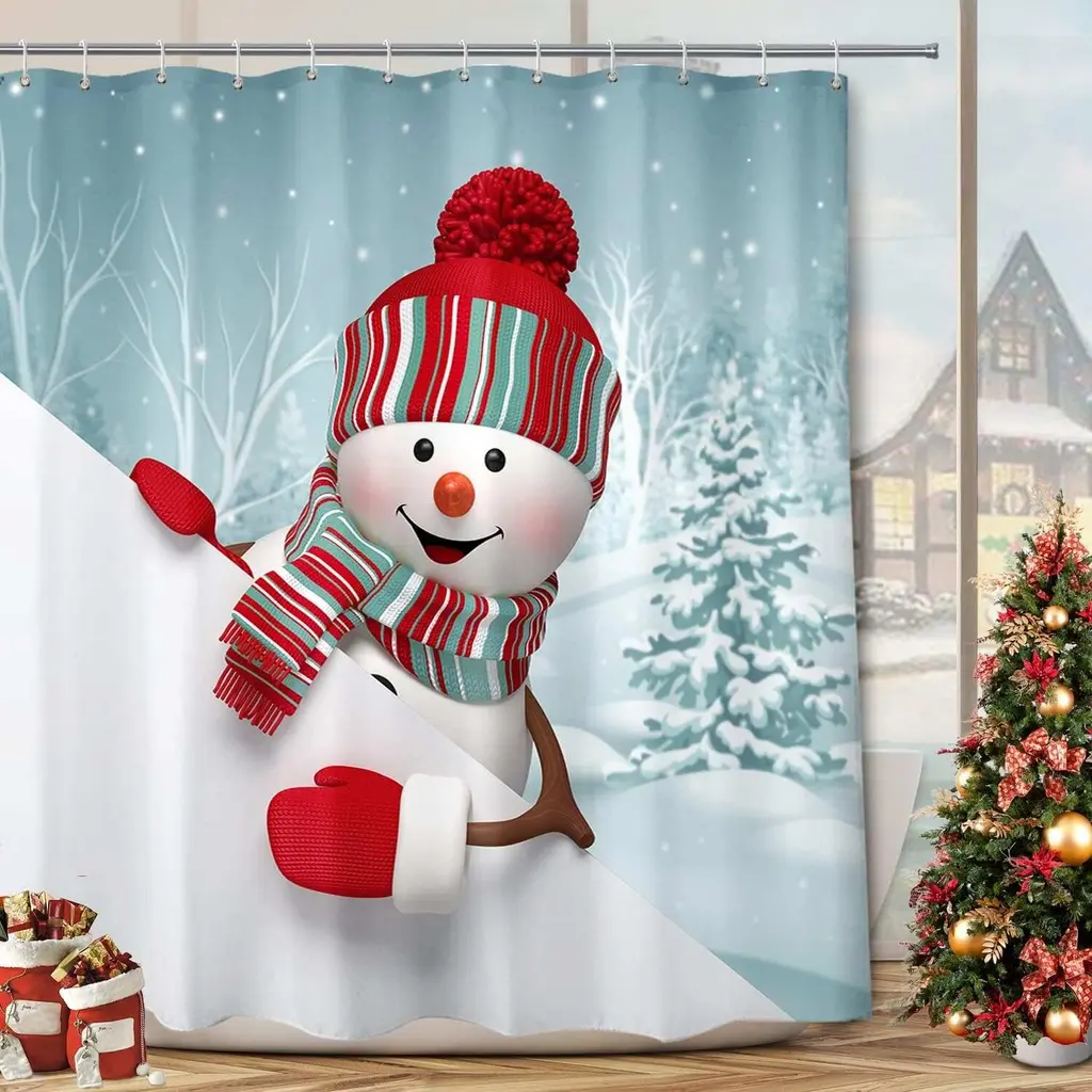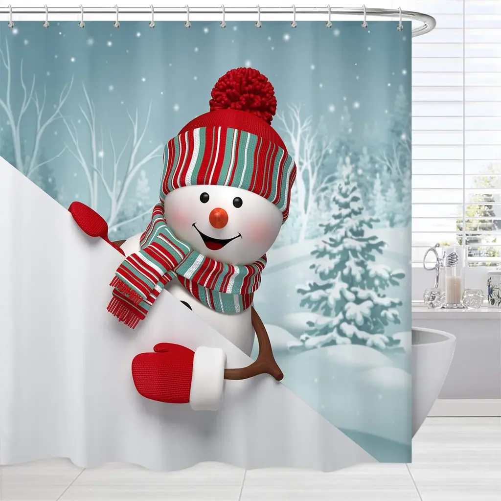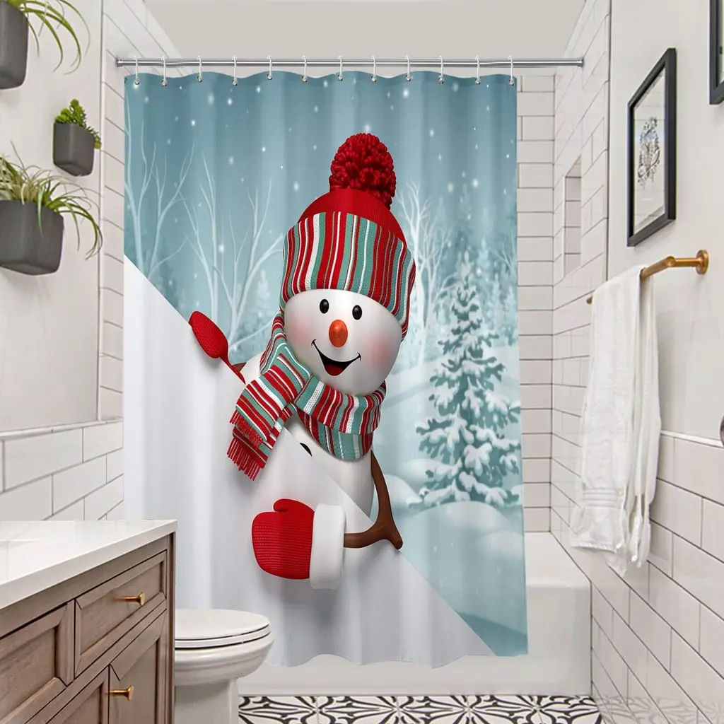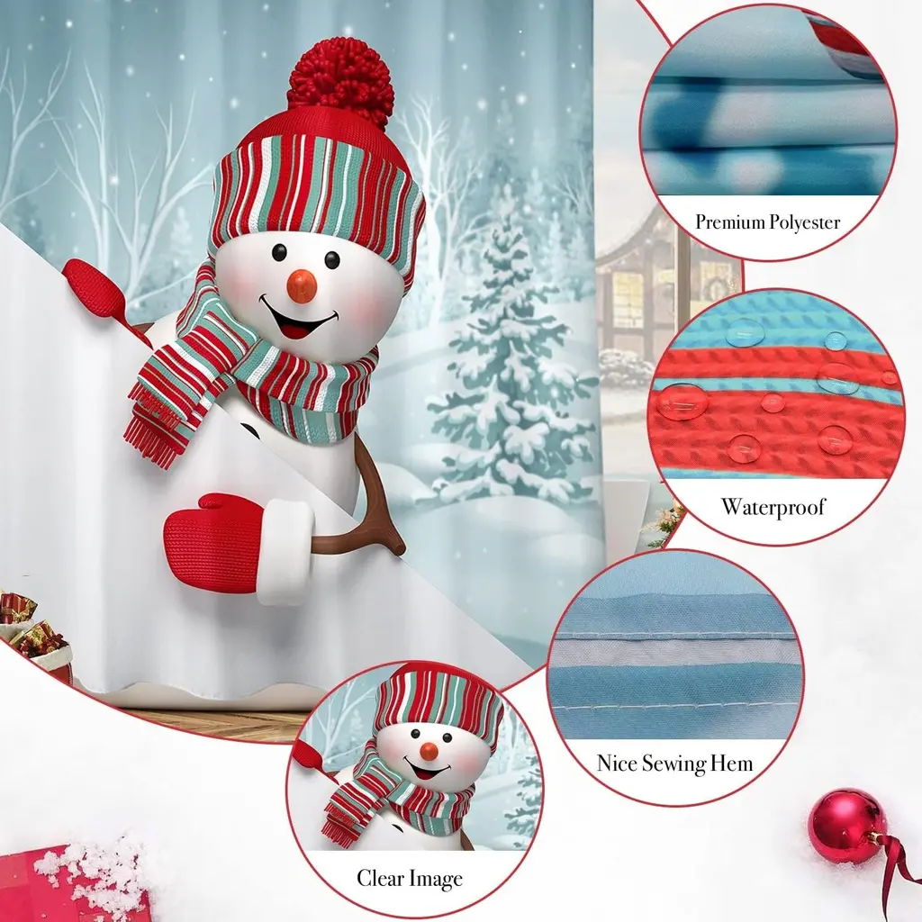 Red Snowman Winter Christmas Shower Curtain, Blue & White Decor, 72x72 - Multicolor