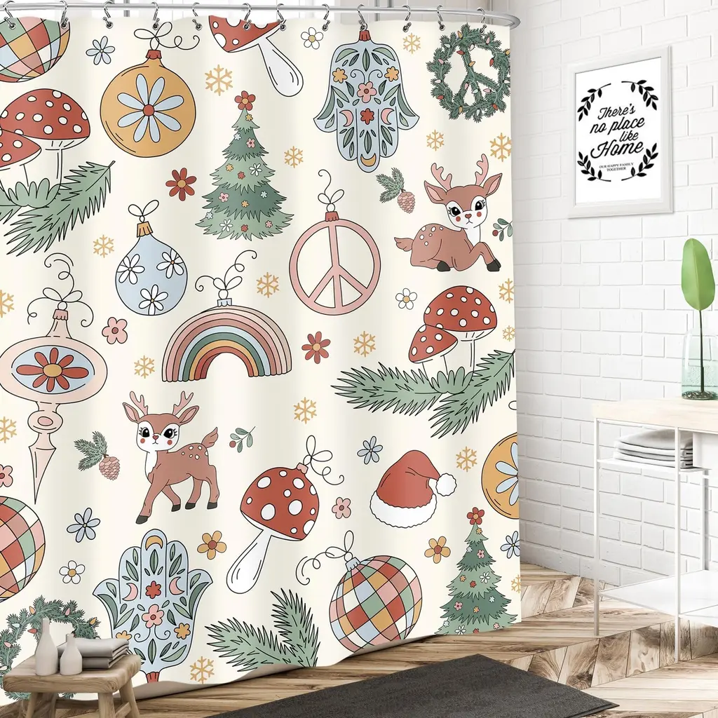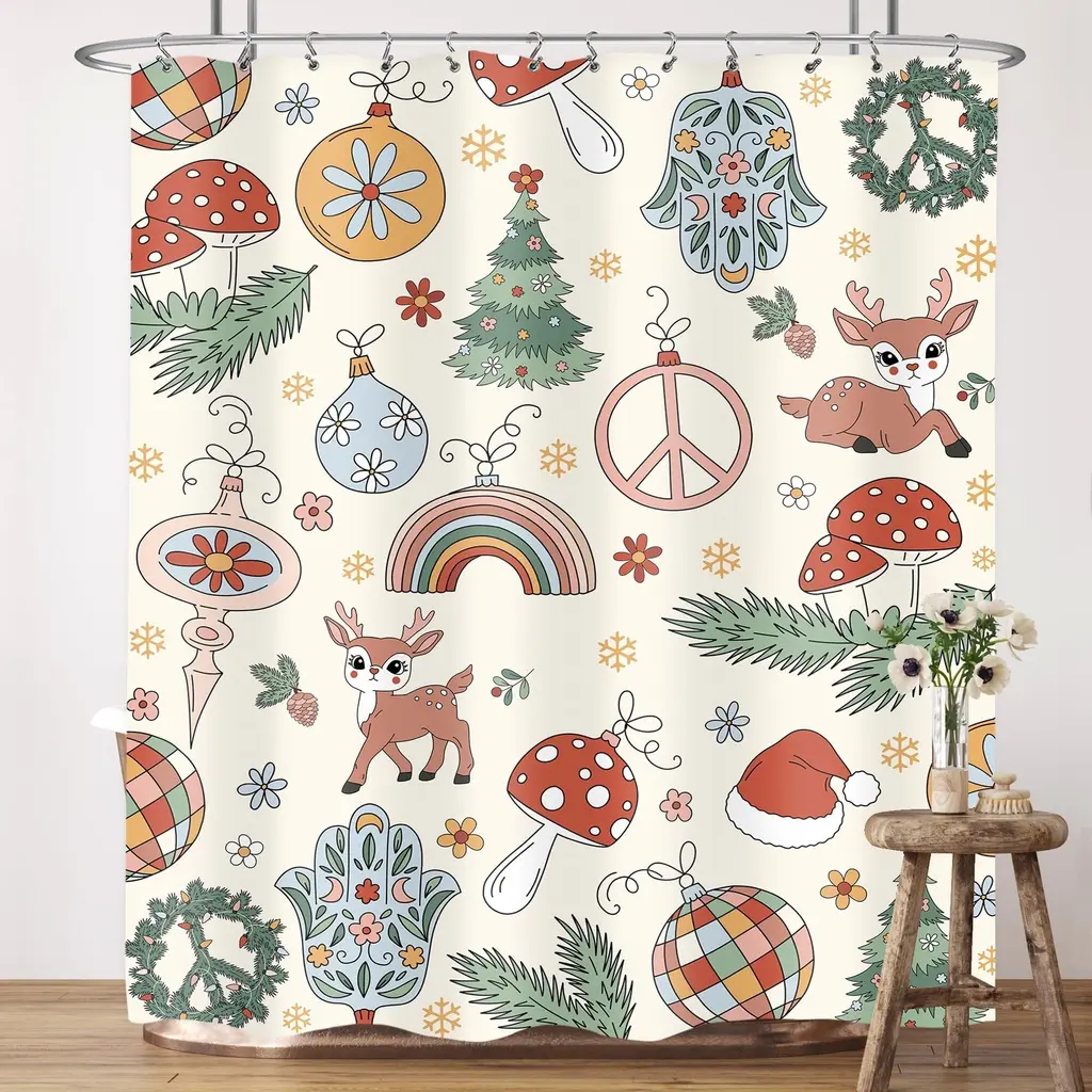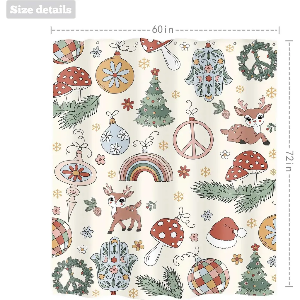 Add a fun and funky twist to your holiday decor with our Retro Christmas Shower Curtain! Featuring a vibrant 70s groovy Santa surrounded by playful mushrooms, this 60x72 curtain is sure to bring a smile to your face. Made from high-quality, water-resistant fabric, it combines durability with style, making it perfect for everyday use. The colorful and whimsical design captures the spirit of the season while adding a unique retro flair to your bathroom. Celebrate Christmas with a splash of nostalgia and personality with this delightful shower curtain that will brighten up your space!