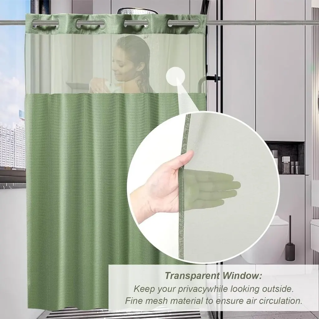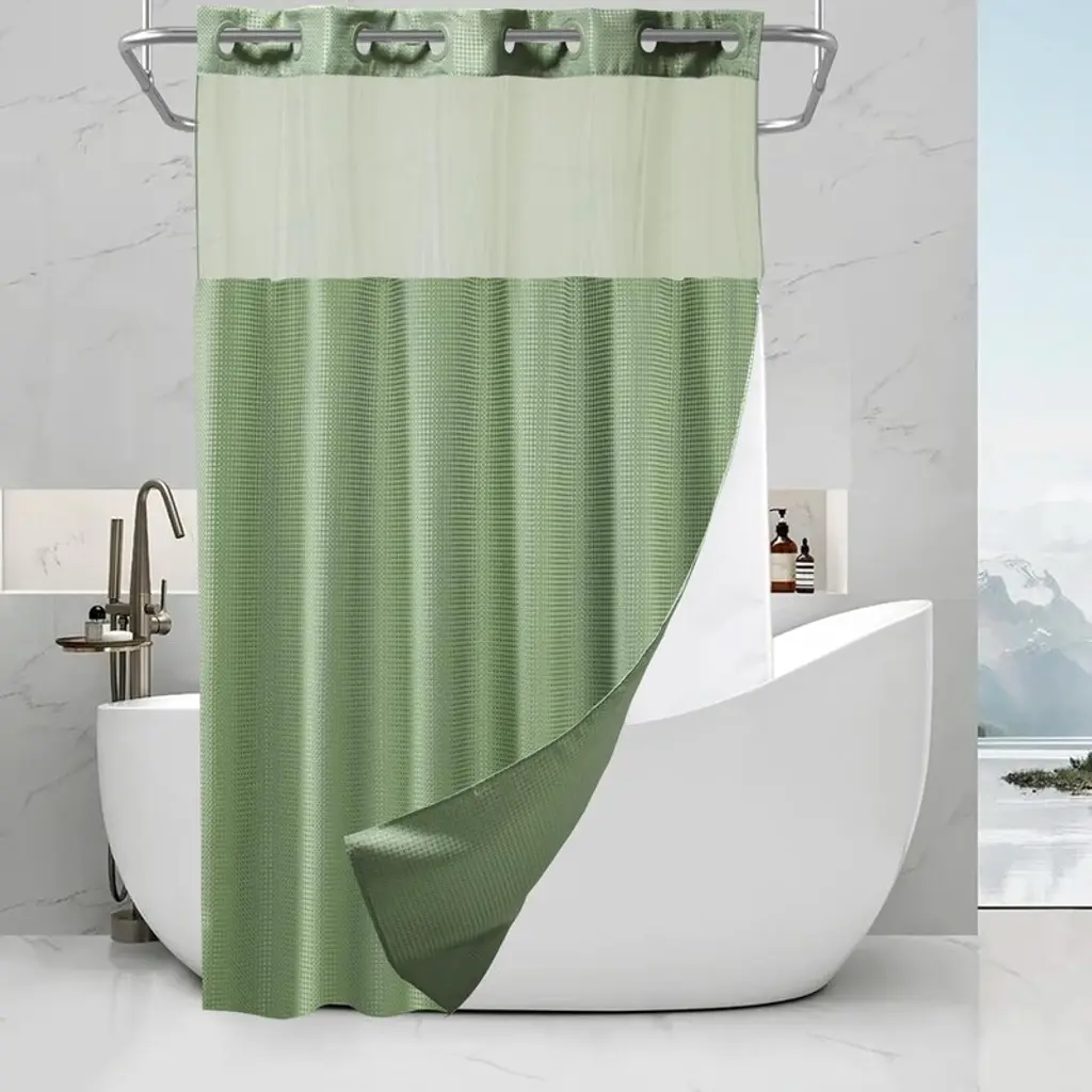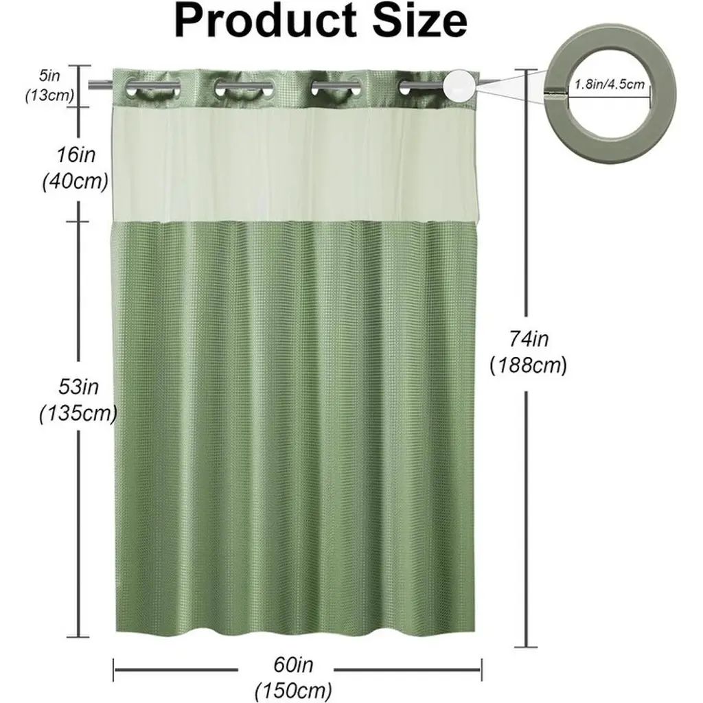Sage Green Shower Curtain Fabric, Bathroom Waffle Shower Curtain, Bohemian Bathroom Decor Set - Size:60"w X 74"l (Pack Of 1