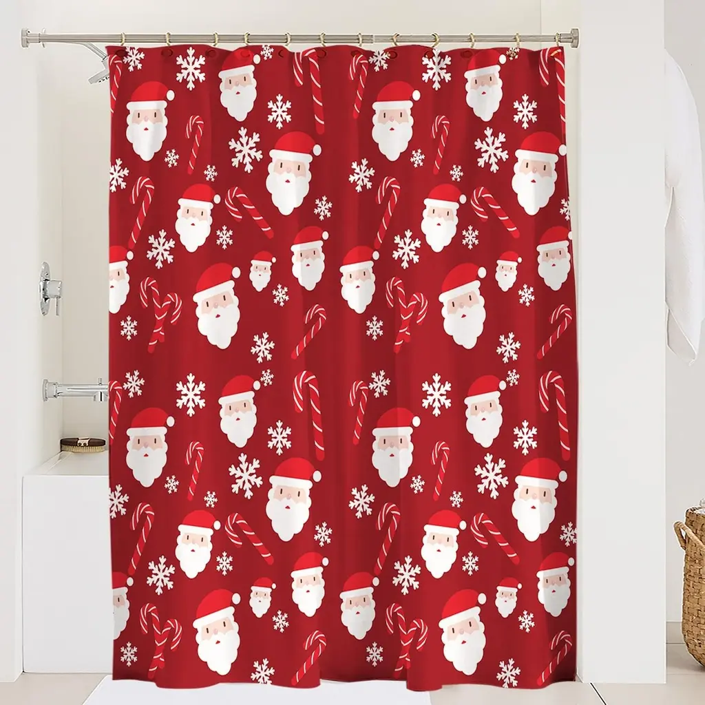 Santa Claus & Snowflake Shower Curtain - Merry Christmas Decor, 72x72 - Multicolor