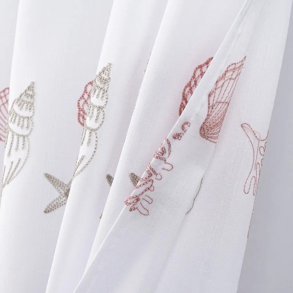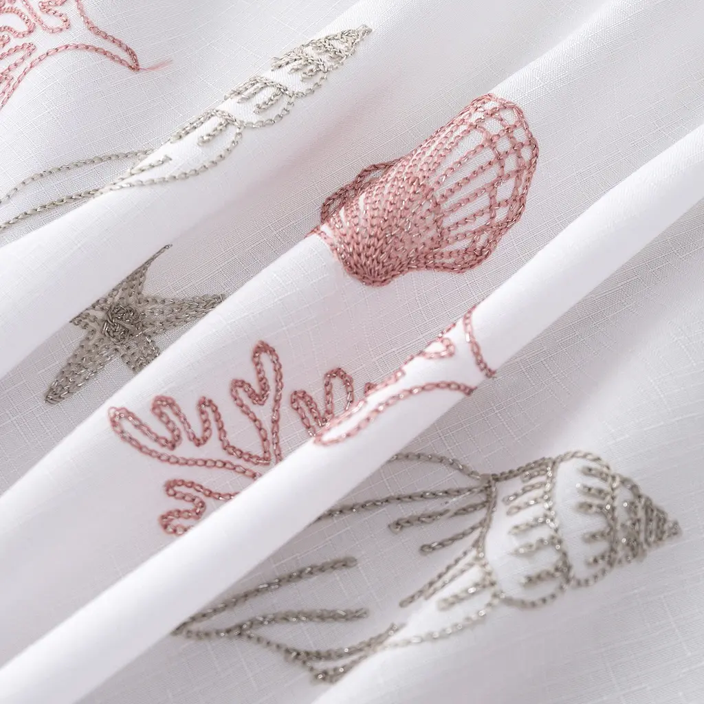Seashells Coastal Embroidered Shower Curtain - Shell - Coral