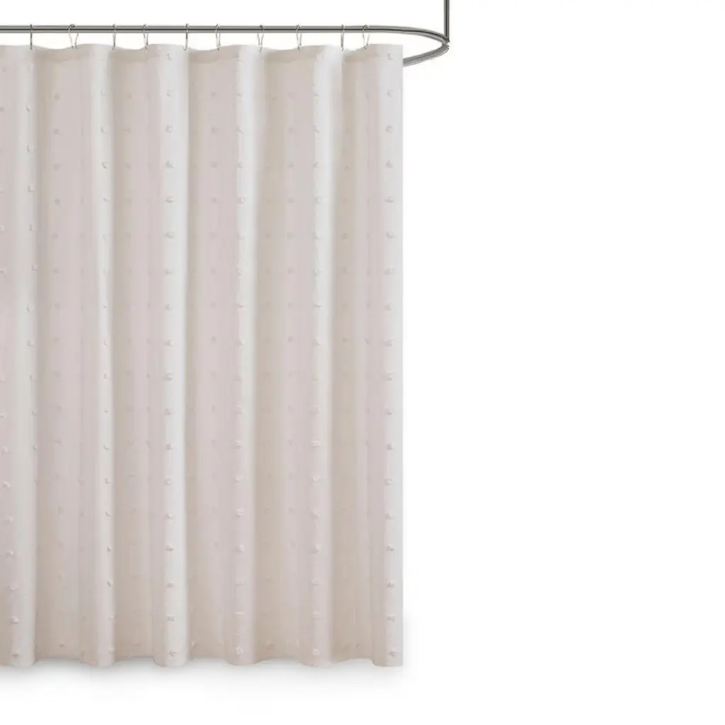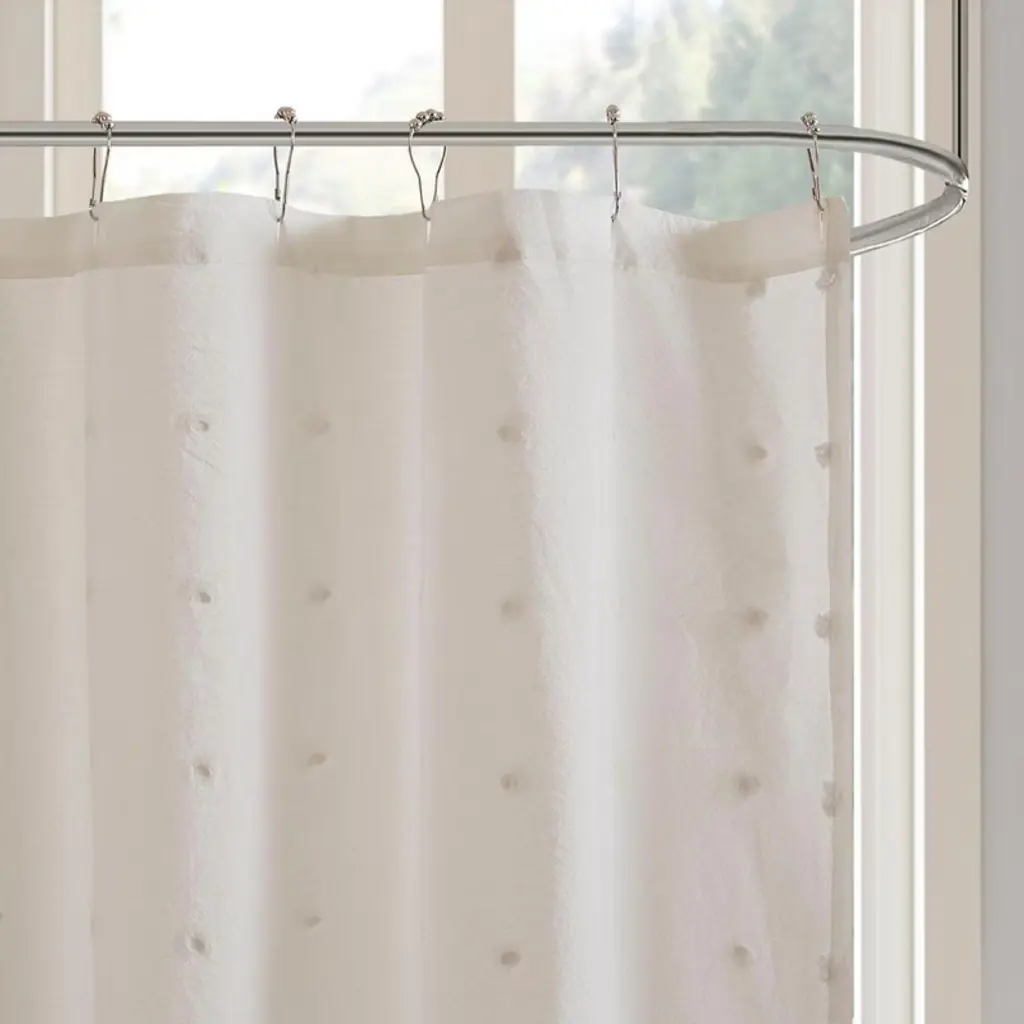 Sevobal Shower Curtain Brooklyn Cotton Jacquard With Pom Pom Tufts For Stylish Bathroom Decor, Ivory, 72"*70"*0.13"
