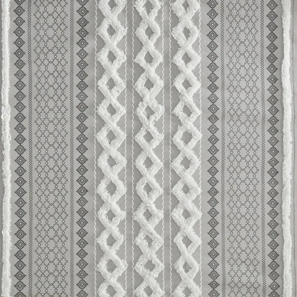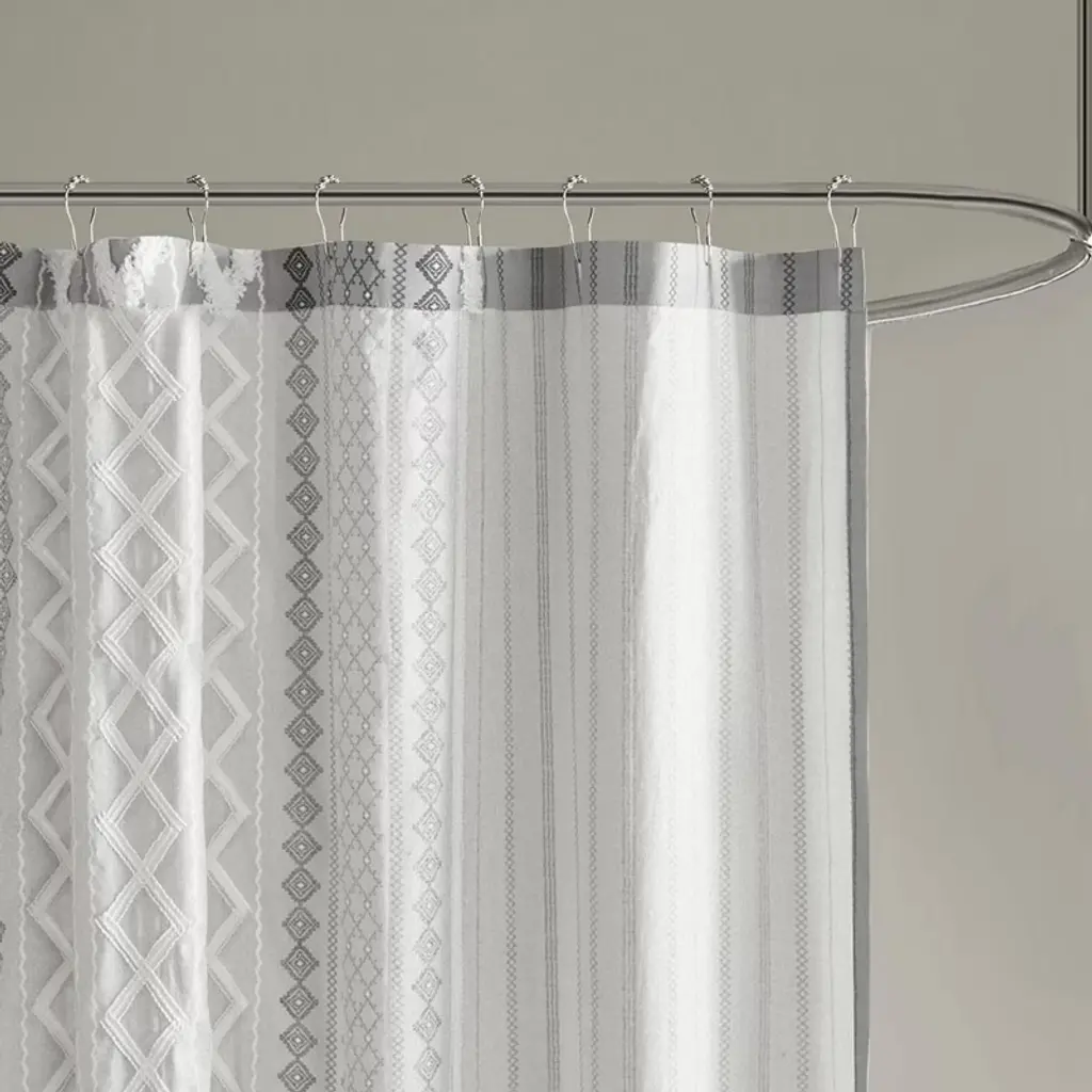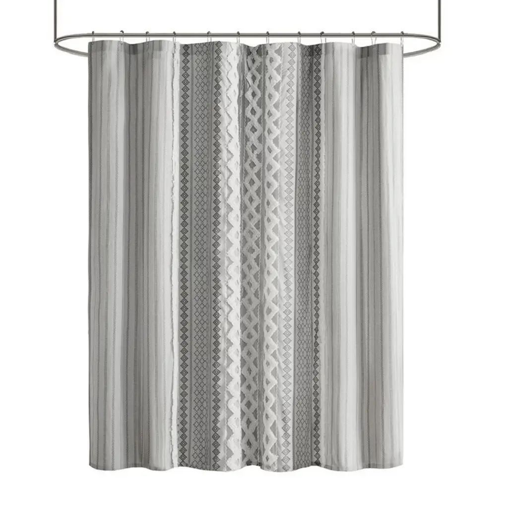 Sevobal Shower Curtain Cotton Fabric Aztec Print Tufted Chenille Waterproof Machine Washable 12 Button Holes, Gray, 72"*72"*0.13"