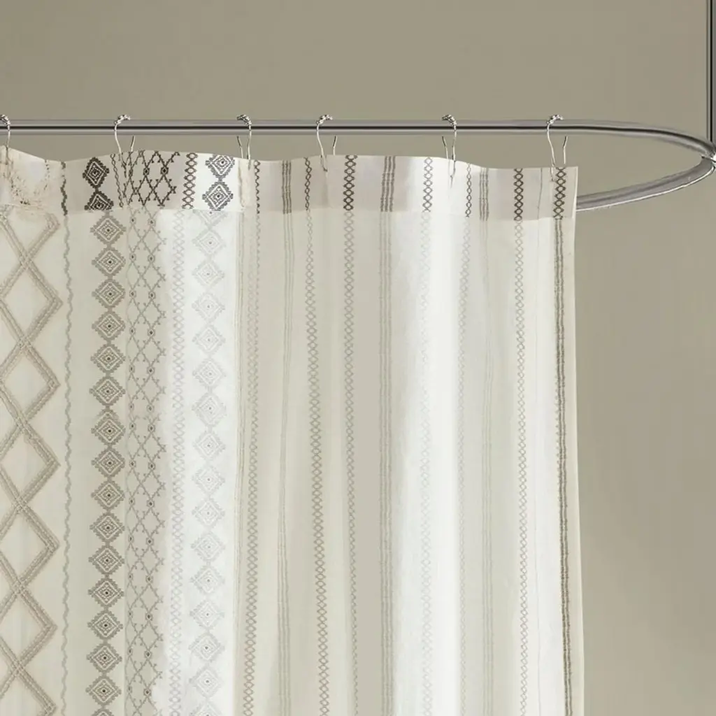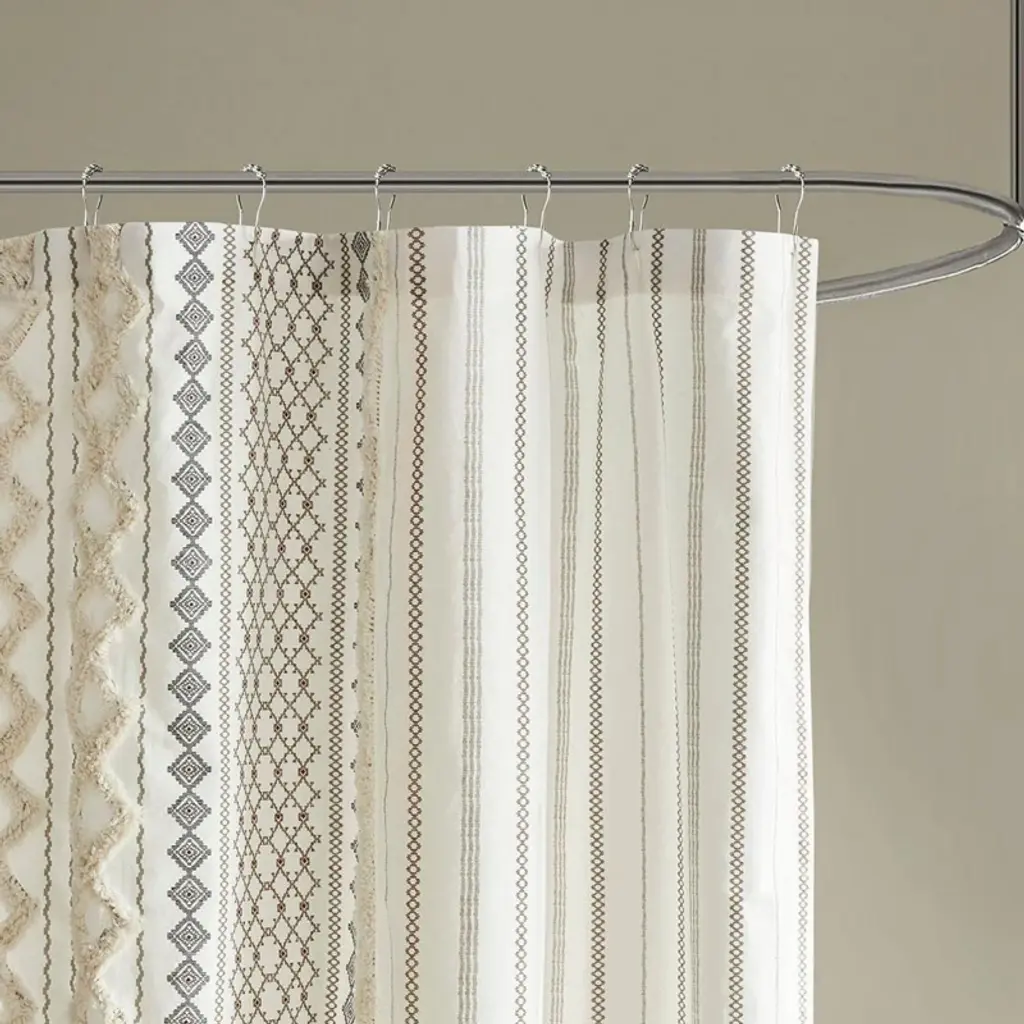 SEVOBAL Shower Curtain brings a vibrant, global-inspired Aztec print to your bathroom, adding a modern and cultural touch. Made from 100% cotton with tufted chenille stripe trim, it offers a soft, luxurious feel. The 12 button holes ensure easy installation and a secure fit. With a water-repellent feature, this curtain keeps water beads off the fabric, maintaining a dry, clean look. Machine washable for simple maintenance, this curtain stays fresh with minimal effort.