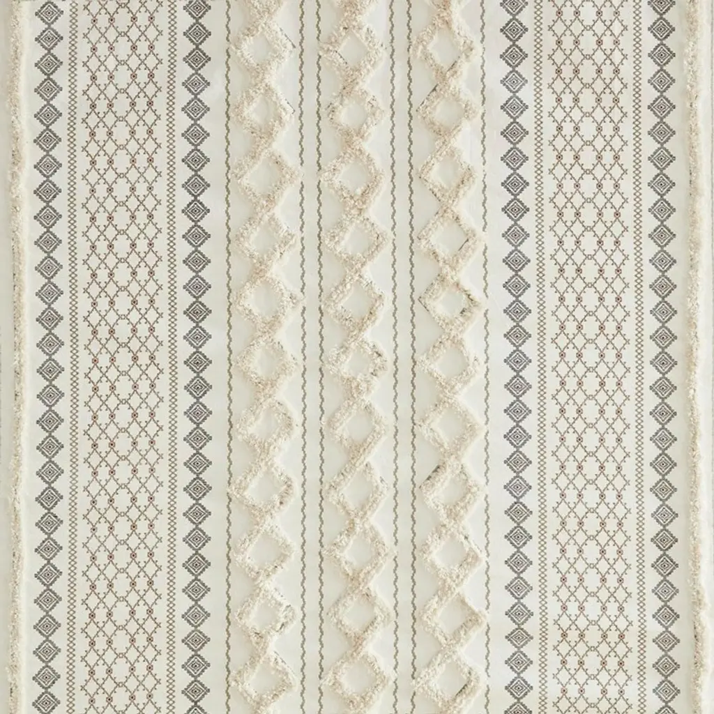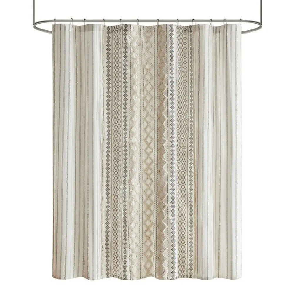 Sevobal Shower Curtain Cotton Fabric Aztec Print Tufted Chenille Waterproof Machine Washable 12 Button Holes, Ivory, 72"*72"*0.13"