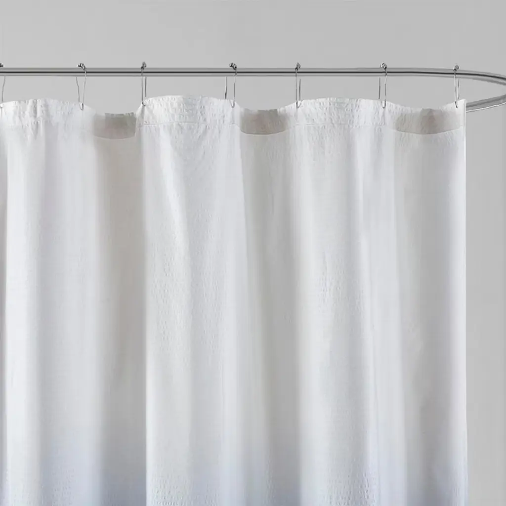 SEVOBAL Shower Curtain adds a modern ombre design to your bathroom, creating a fresh and stylish look. The textured seersucker fabric enhances the ombre pattern, offering a unique and visually striking appeal. With twelve button holes, it's easy to install and stays securely in place for a smooth shower experience. The lightweight fabric is machine washable, ensuring low-maintenance care. A chic and trendy addition to any modern bathroom, this curtain elevates your space with sophistication.