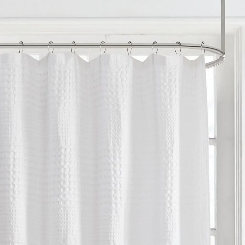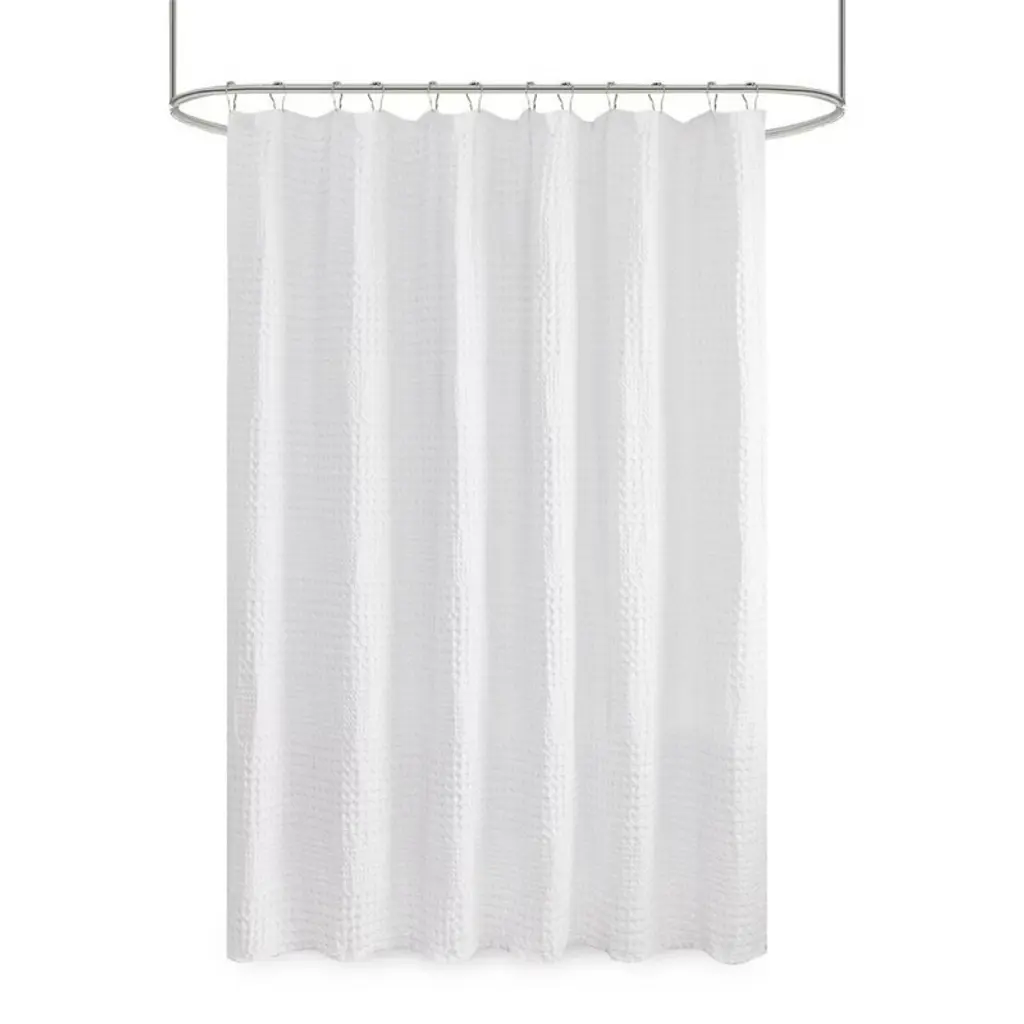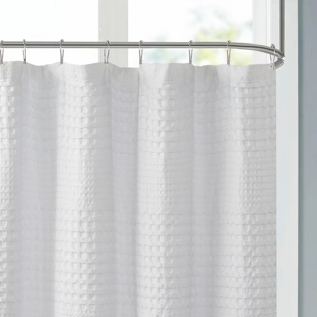 Sevobal Shower Curtain Super Waffle Textured Cotton Fabric Dimensional Dry Hand Natural Look Easy Care Machine Washable, White, 72"*72"*0.13"