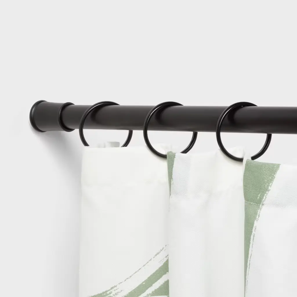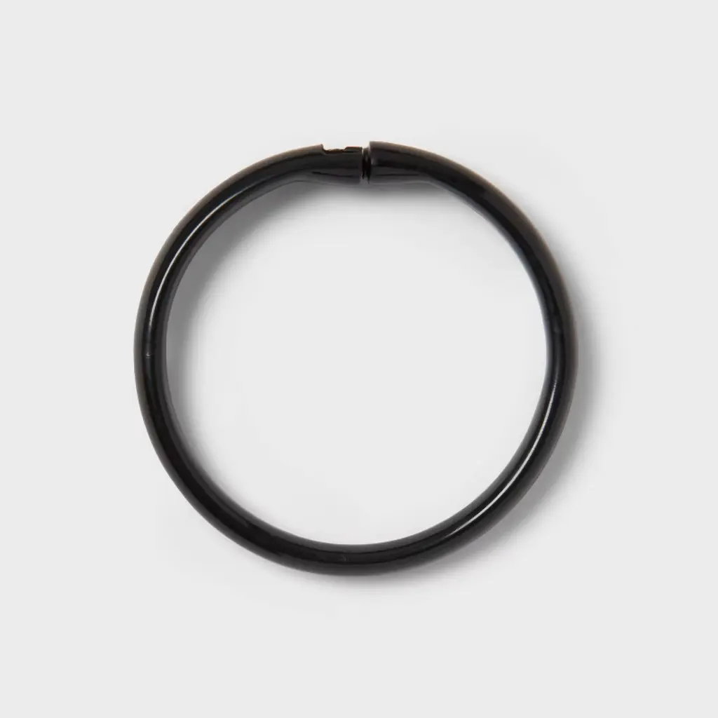 Make your shower experience more enjoyable with these 12-Piece Shower Curtain Rings from Room Essentials™. These shower curtain rings come with a snap closure to hang the curtains over a standard rod easily. Featuring a round shape, these curtain rings glide effortlessly for hassle-free curtain movement. Plus, they are designed in a black hue to match various decor styles. Room Essentials™: Everyday Value