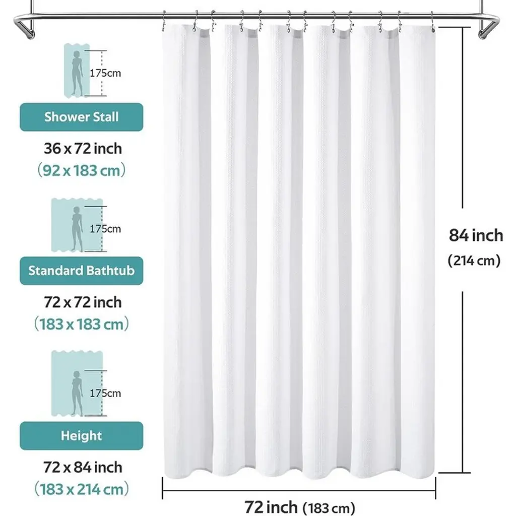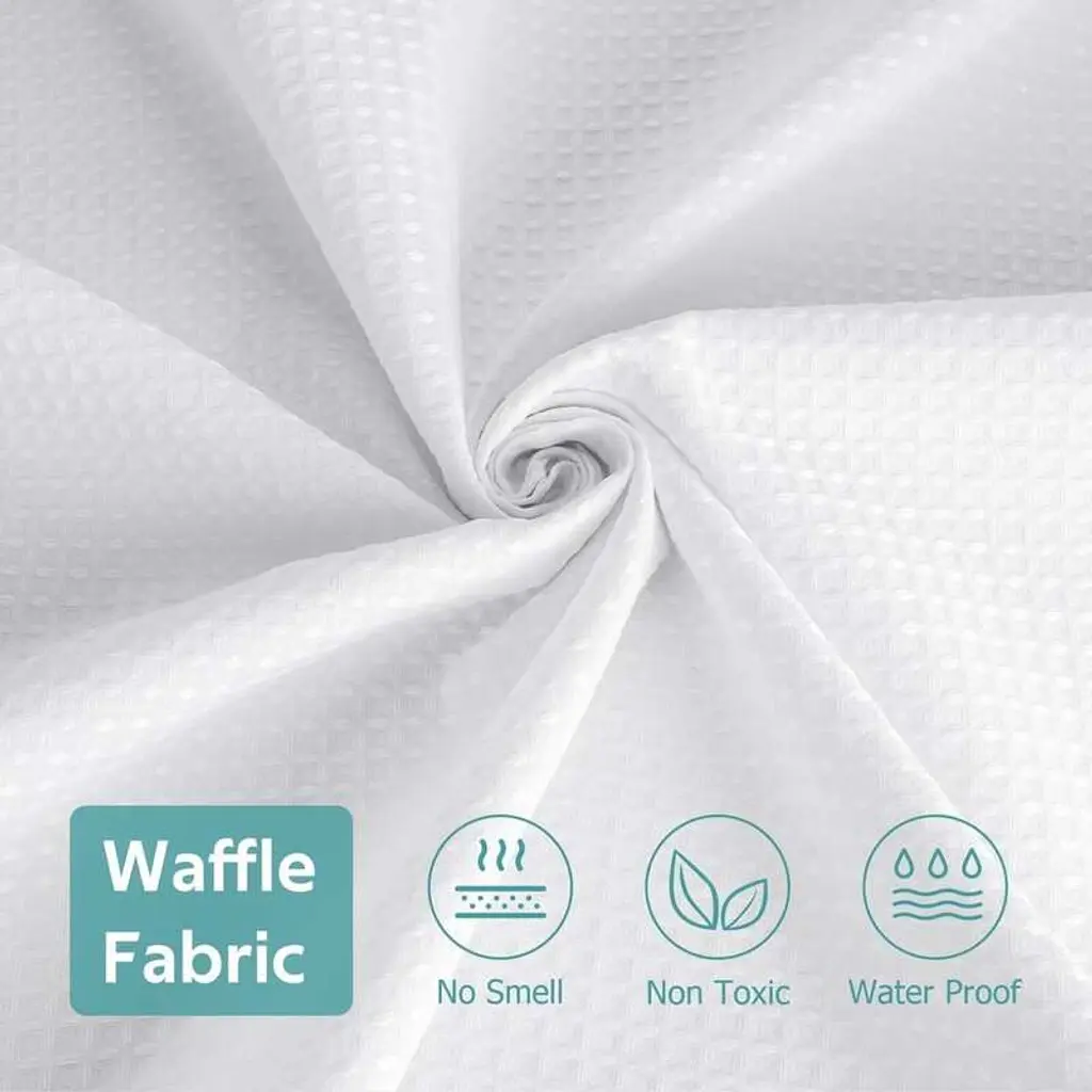 Shower Curtain Set, Waffle Shower Curtain And Liner Set, Deluxe Weighted Fabric Shower Curtain (For Bathroom) - Sage Green