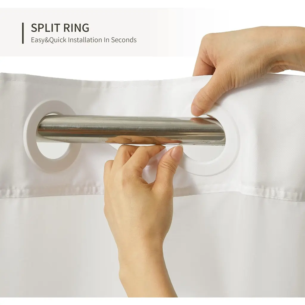 Shower Curtain with Snap in Liner, 71Wx74H, White and Black Stripe