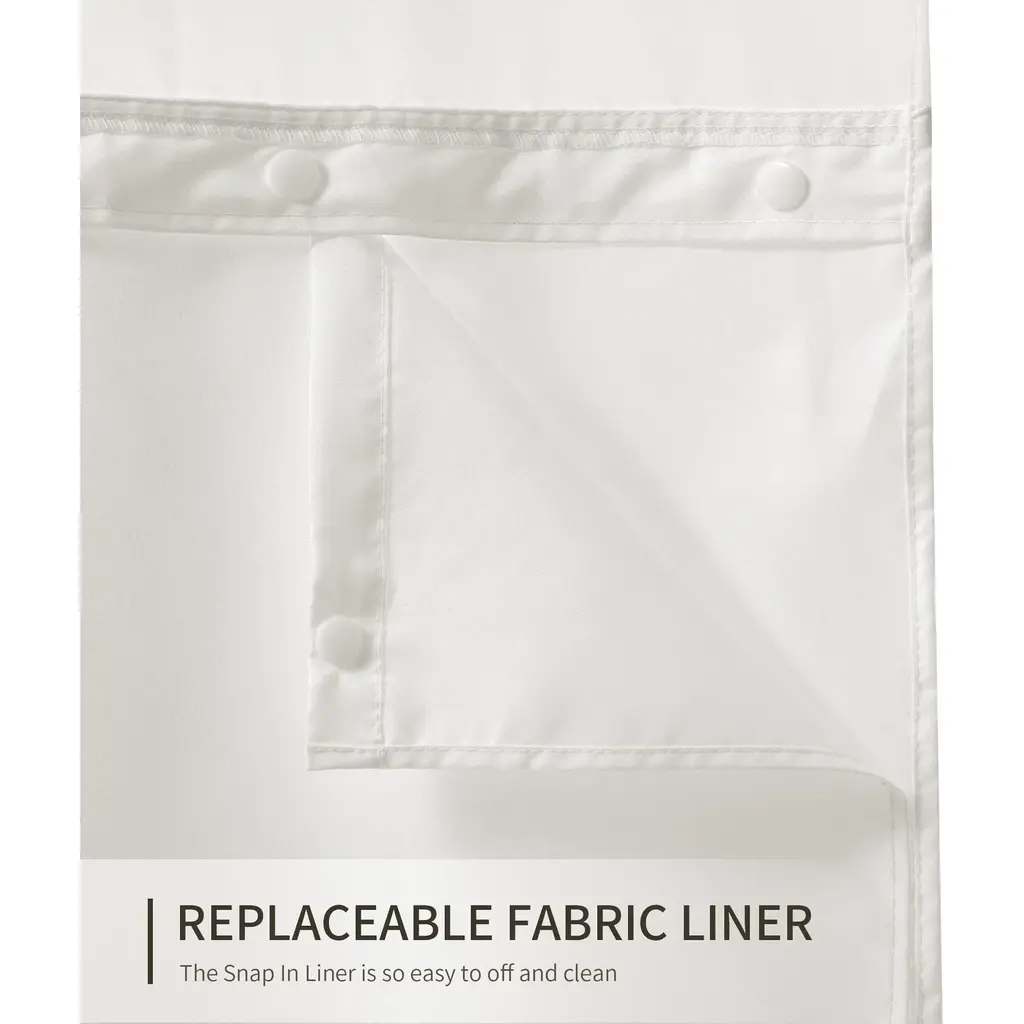 Shower Curtain With Snap In Liner, 71wx74h, White And Black Stripe - Multicolor