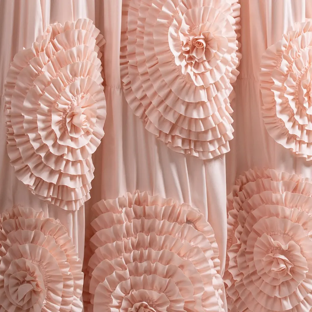 Silver Orchid Bara Ruffle Flower Trim Shower Curtain - Blush