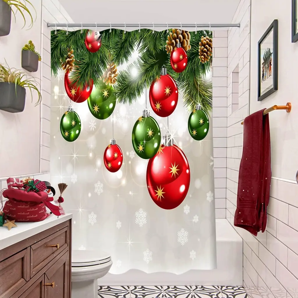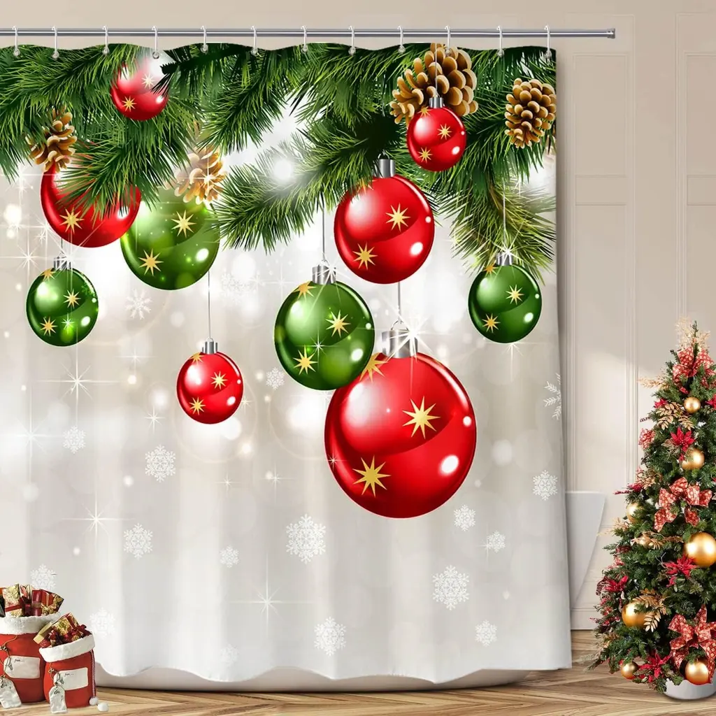Small Christmas Shower Curtain, 60" X 72", Red And Green Decor - Multicolor