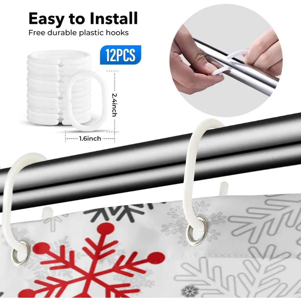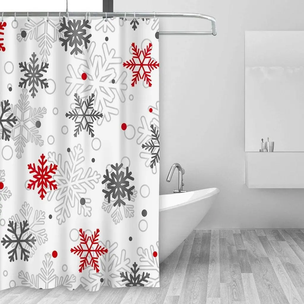 Elevate your holiday decor with our Snowflakes Christmas Shower Curtain, featuring a stunning design in festive red and gray. Measuring 72x72 inches, this beautiful curtain showcases intricate snowflake patterns that create a cozy winter atmosphere in your bathroom. Made from high-quality, water-resistant fabric, it ensures durability and easy cleaning for everyday use during the holiday season. The vibrant red and soft gray tones add a cheerful yet sophisticated touch, making it a perfect addition to your Christmas decor. Embrace the spirit of the season with this charming shower curtain that brings warmth and joy to your home!